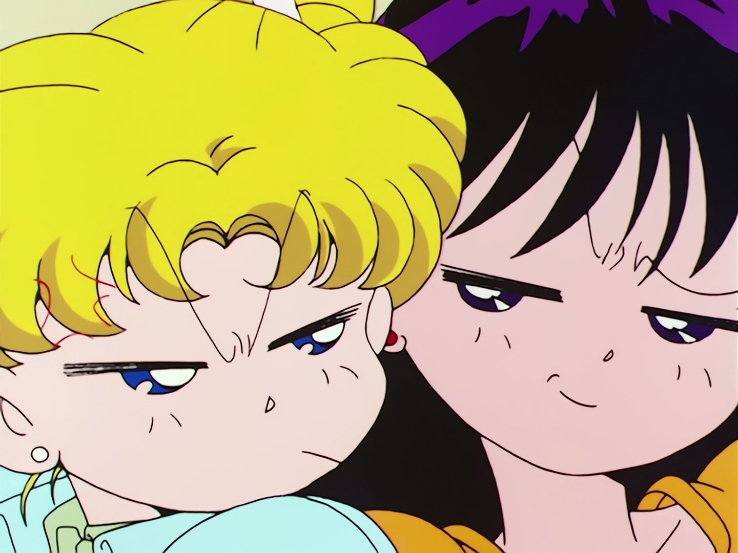 tak samo jak ich paczka, ale Rei dodaje, że one nie mają w swojej grupie takiej niezdary, jak Usagi. Jej komentarz powoduje, że Usagi zaczyna się z nią kłócić.
