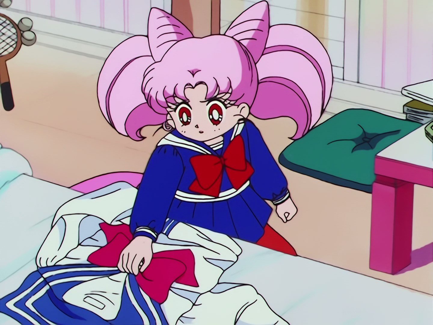Chibiusa stoi na pomoście nad brzegiem jeziora i kontempluje fakt, że Usagi i pozostałe dziewczyny to wojowniczki. Po chwili zawraca i zbiega z pomostu.
