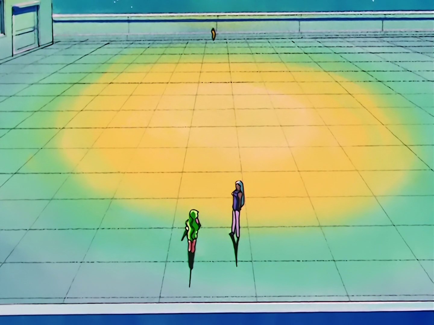 Sailor Moon i Artemis ostrożnie przemierzają szkolne korytarze w poszukiwaniu Chibiusy. Oboje zaglądają do klasy, w której powinna być Chibiusa razem z Luną, ale zauważają, że nikogo w niej nie ma. Sailor Moon woła Chibiusę, aby