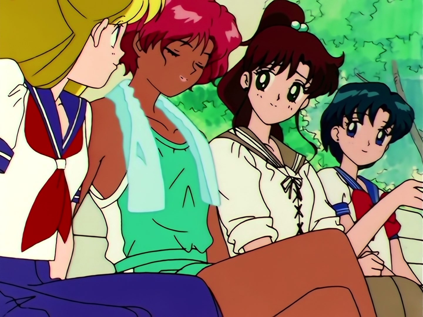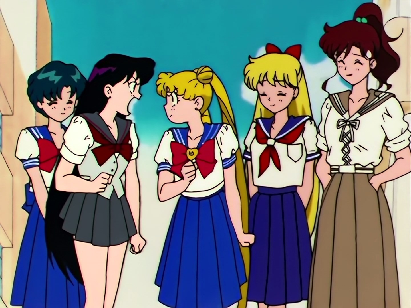 sobą kłócić. Usagi wytyka Rei, że w jej szkole przechodzi się dalej automatycznie bez egzaminów, więc ona nie powinna się w tej kwestii wypowiadać. Do rozmowy wtrąca się Ami i zapewnia Usagi, że ona też da sobie radę. Usagi jest szczęśliwa