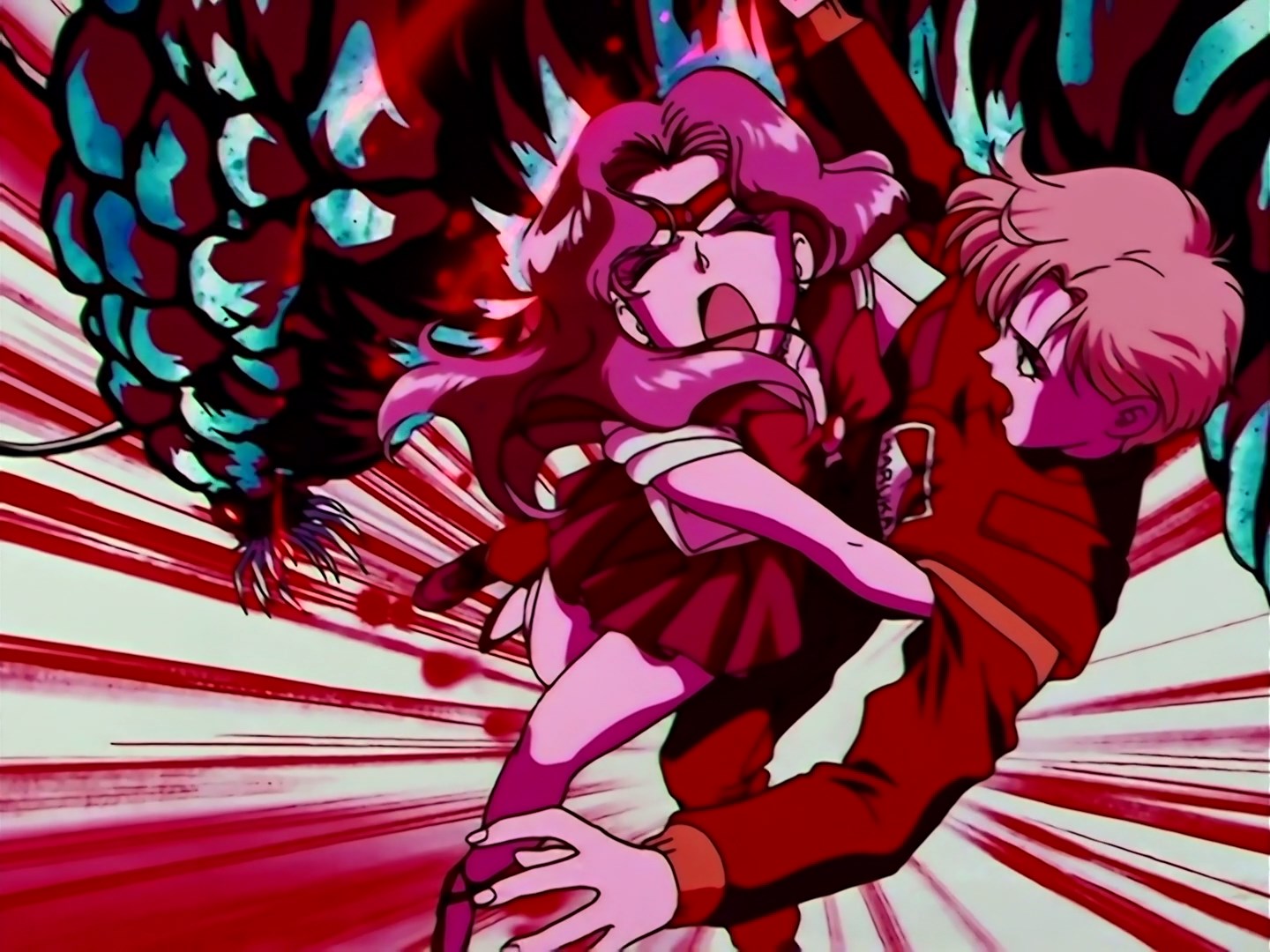 więcej ofiar. Obie zaczynają się sprzeczać, a w międzyczasie spod poprzewracanych półek podnosi się potwór i ponownie rzuca na Harukę. Sailor Neptune zasłania ją własnym ciałem, przez co zostaje ranna. Chwilę później stosuje przeciwko