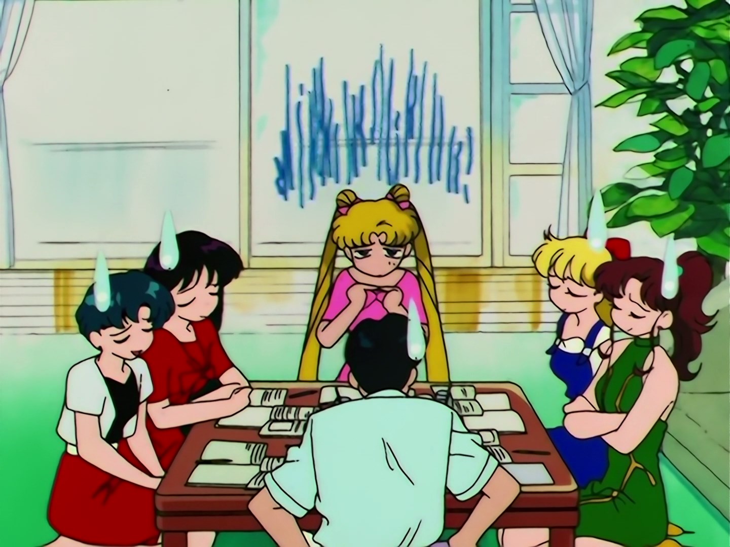 Usagi znajduje się przy biurku i mówi sama do siebie, jak siedzi w chłodnym pokoju z klimatyzacją i przeżywa chwile szczęścia, ale widać, że tak naprawdę siedzi ze swoimi przyjaciółkami i wszystkie uczą się do egzaminów. Minako krzyczy