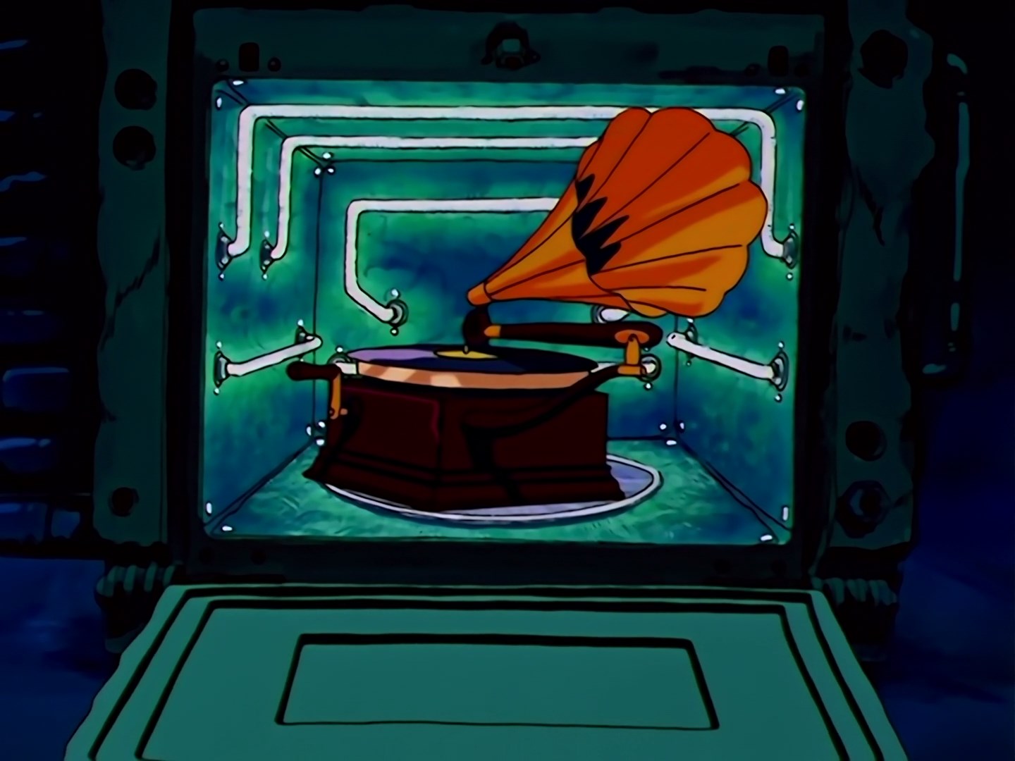 muzyki zostaje przerwane przez Tuxedo Kamen, który rozbija płytę gramofonową różą. Chikuon rzuca w niego tubą od gramofonu, a Sailor Moon wykorzystuje sytuację i stosuje Moon Spiral Heart Attack.