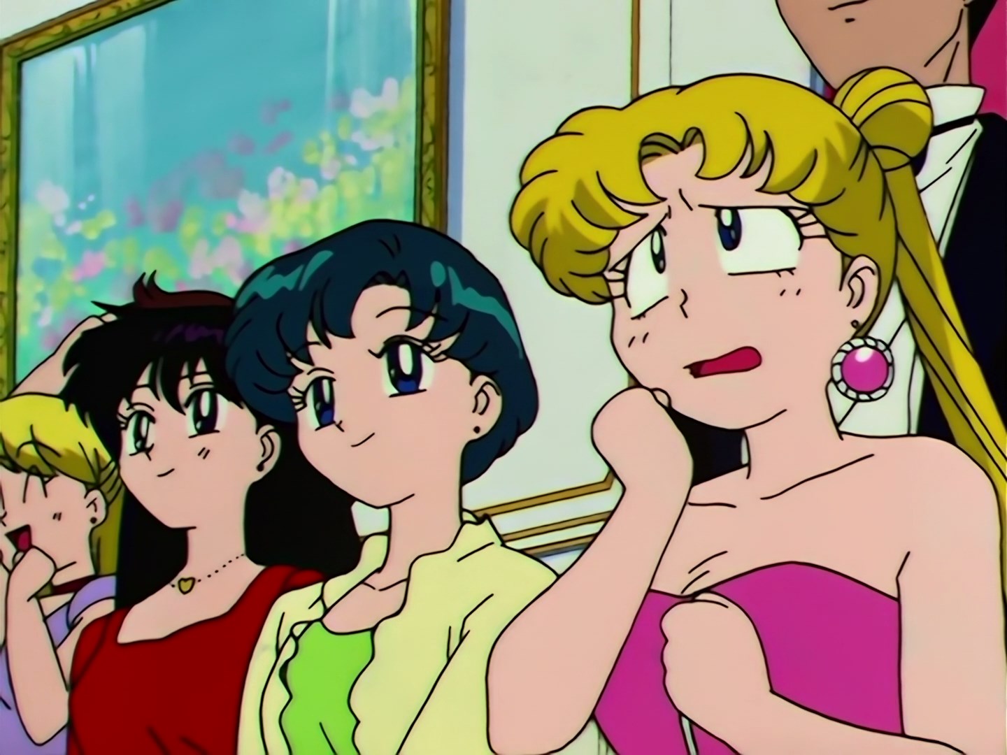 pójdą na przyjęcie w eleganckim i bogatym domu, a Ami jest zachwycona tym, że będą mogły poznać wielu mądrych i interesujących ludzi. Usagi cieszy się, że pójdzie na eleganckie przyjęcie razem z Mamoru, a Ami dodaje, że jeśli jest