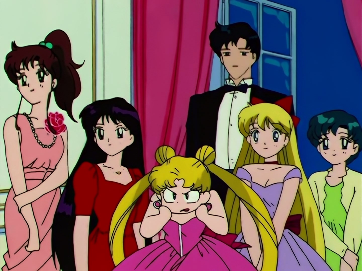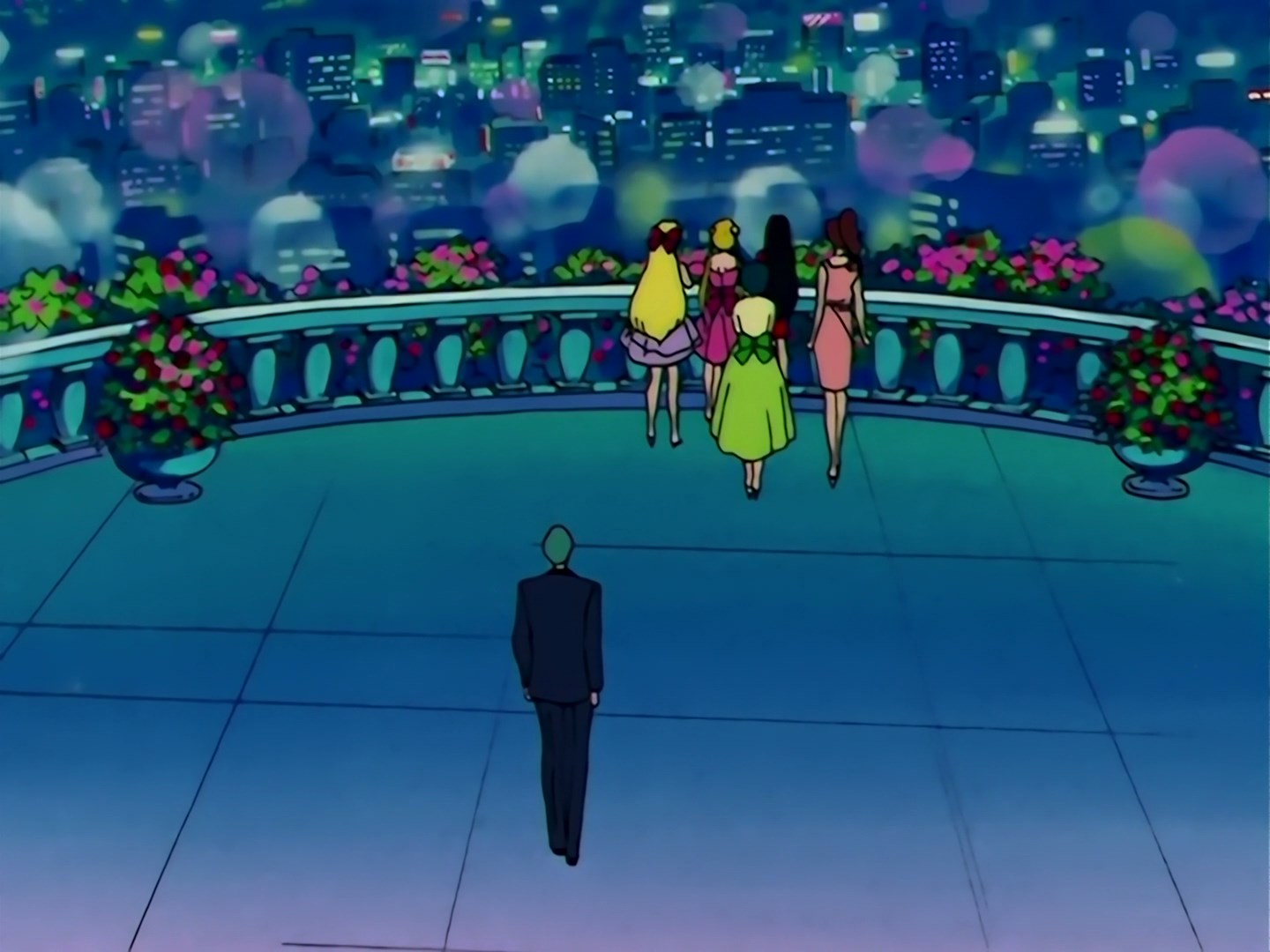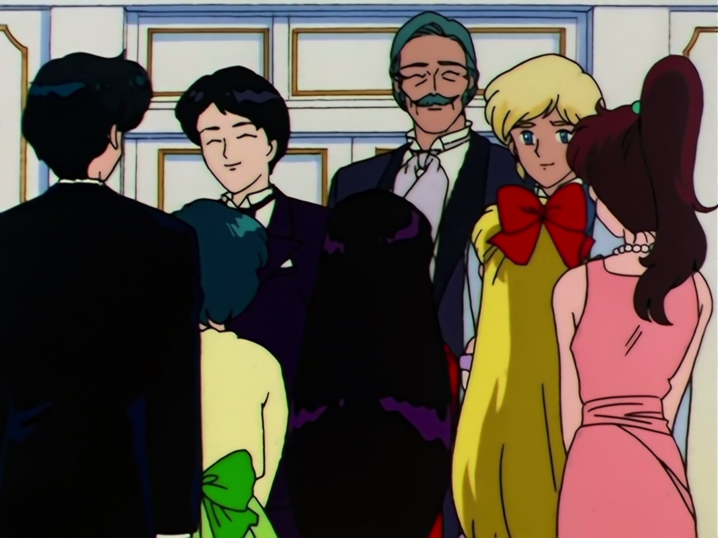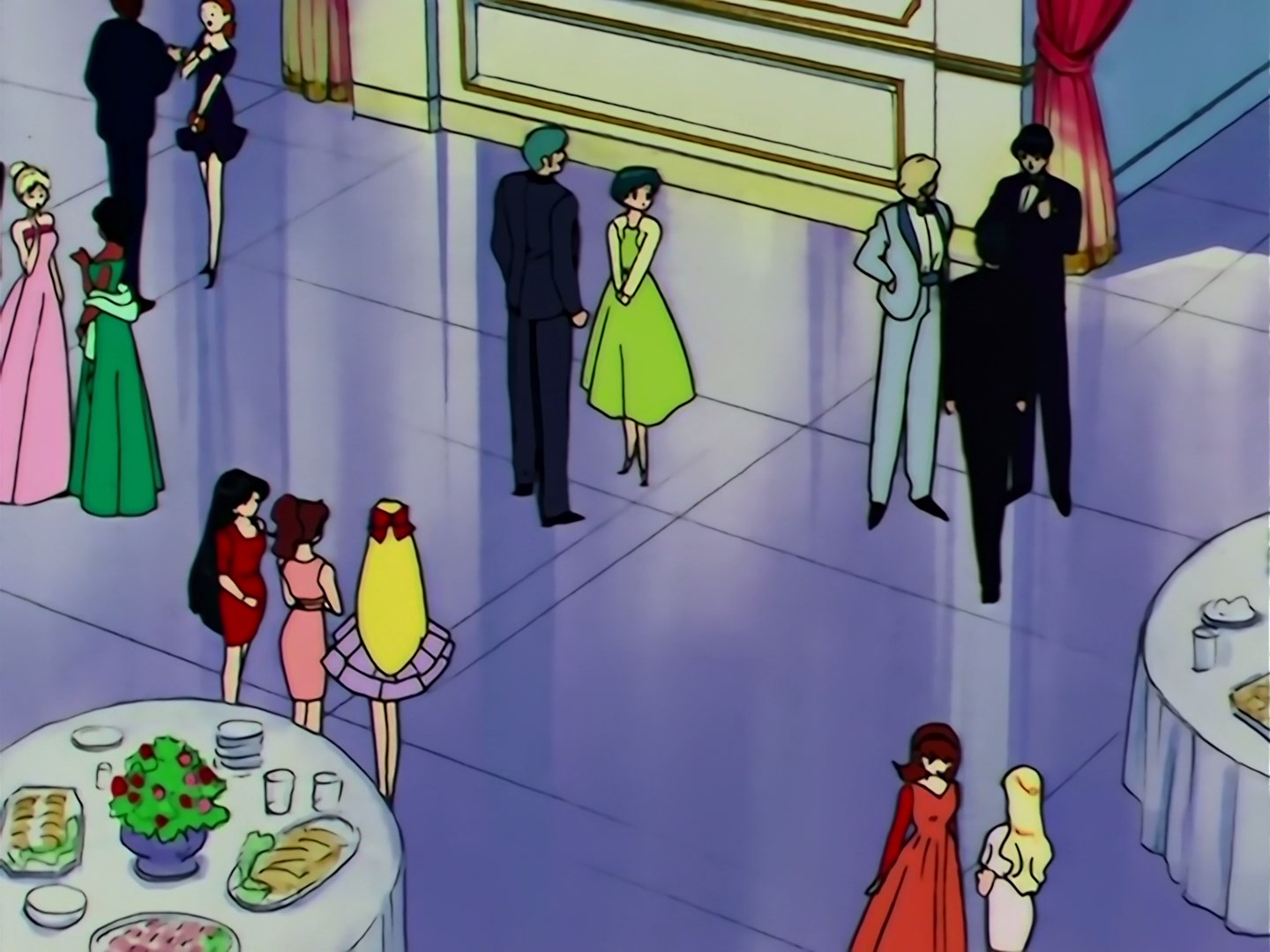 Dziewczyny razem z Mamoru wracają do środka i podchodzą do nich Haruka i Michiru. Muzyka gra dalej, a Michiru prosi Mamoru do tańca. Usagi stanowczo sprzeciwia się temu, aby Mamoru tańczył z inną dziewczyną, ale nie ma nic przeciwko