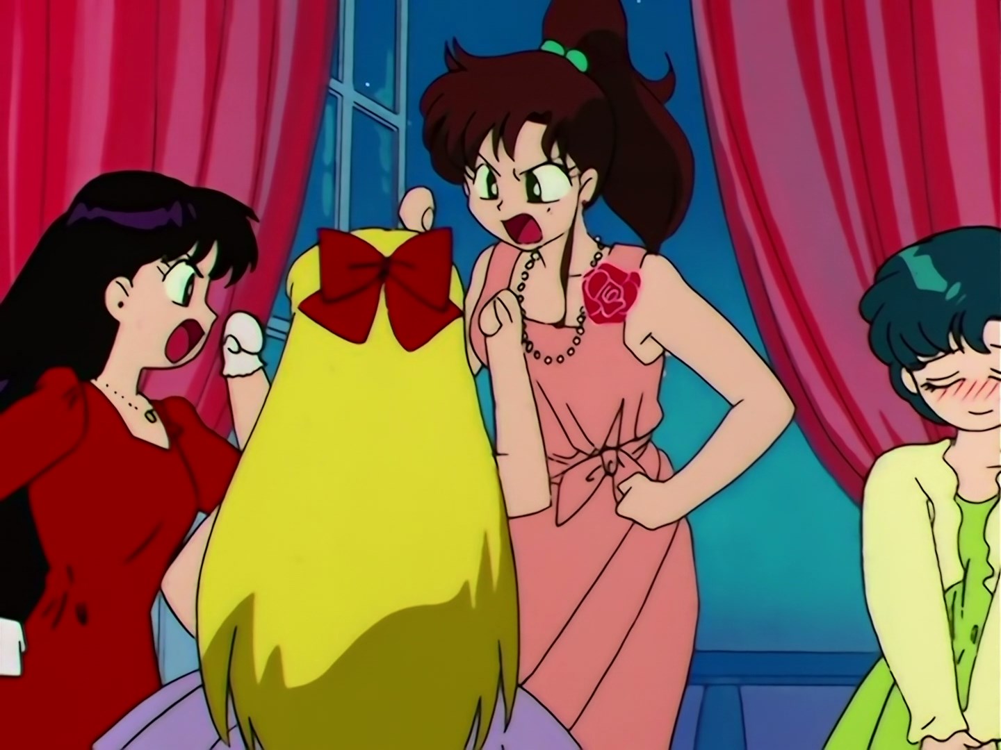 Rei, Mako i Minako cały czas grają, aby ustalić kolejność tańca z Haruką. Kiedy jedna z nich w końcu wygrywa, zaczynają się ze sobą kłócić. Na sali zjawia się Eudial.