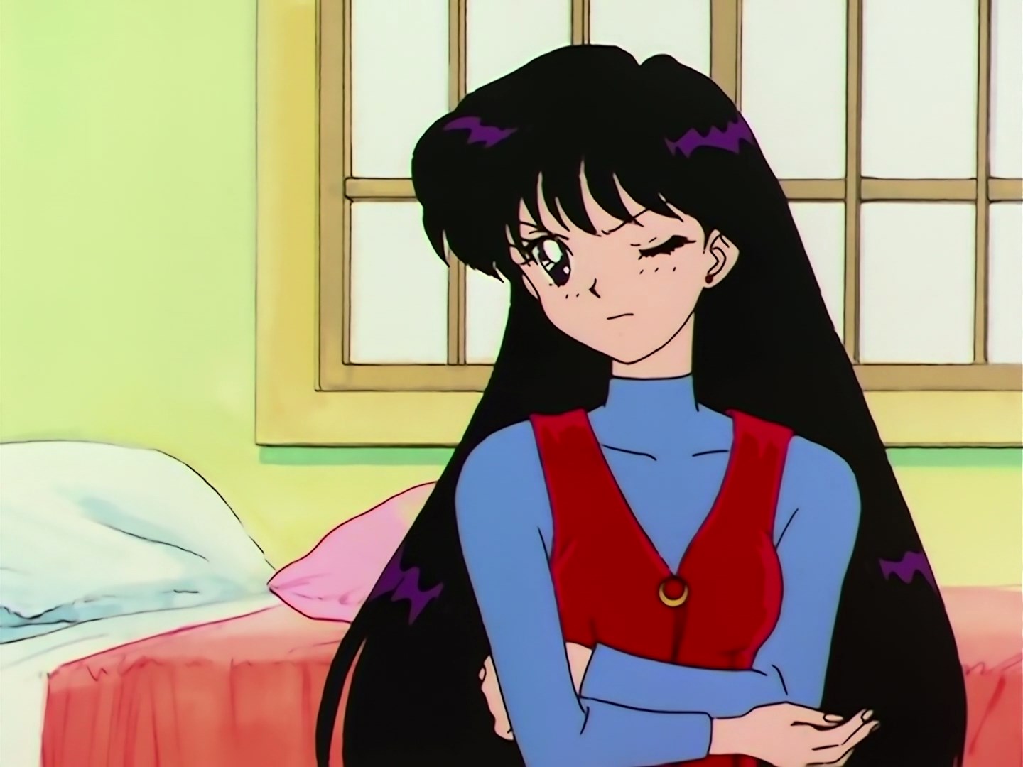 Minako znajduje się w księgarni i przegląda książki znajdujące się na półkach. Przez drzwi zaglądają do środka Usagi, Luna i Artemis. Usagi proponuje, aby na razie zostawić ją w spokoju. Luna uważa, że Minako jest rozsądna i poradzi