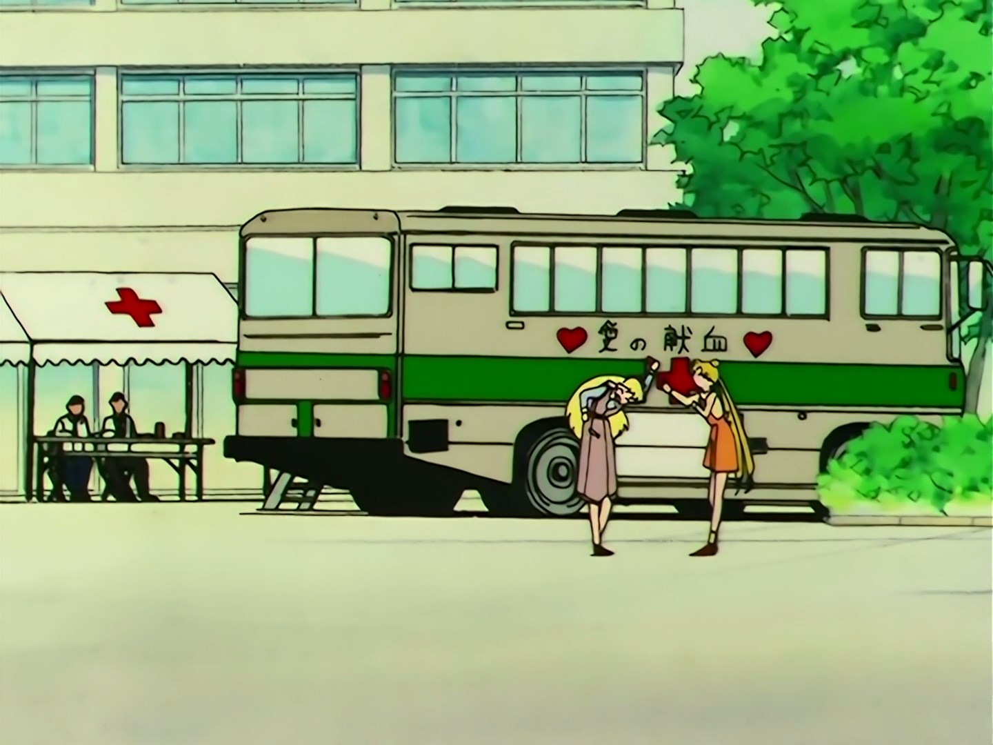 Minako niezwłocznie udaje się do punktu krwiodawstwa i wsiada do autobusu, w którym oddaje się krew.