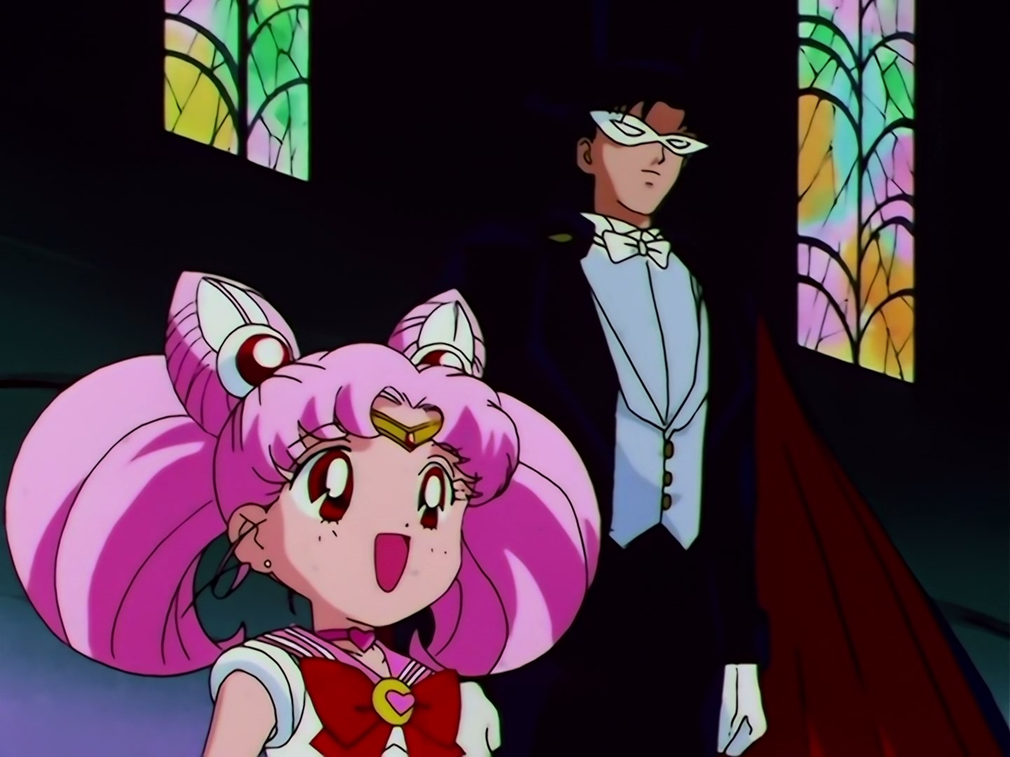 i że teraz spłoną na popiół. Po tych słowach Eudial ucieka razem z Talizmanami. Niespodziewanie jedno z okien katedry zostaje wybite i do środka wpadają Tuxedo Kamen oraz Sailor Chibi Moon. Mała wojowniczka wykorzystuje Lunę P, przemieniając