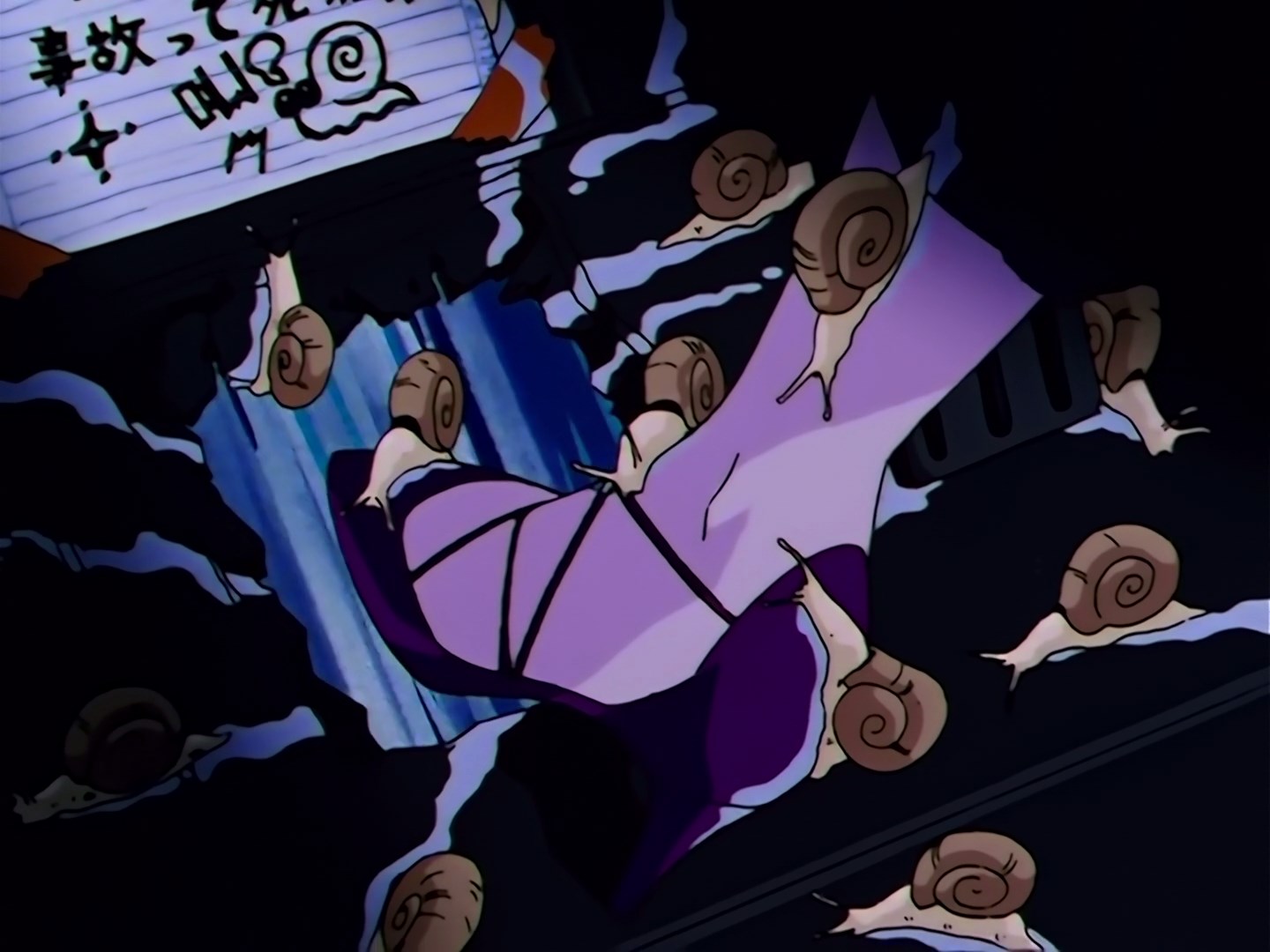 z kleju, a Sailor Chibi Moon, próbując się uwolnić, przykleja się do podłogi również dłońmi, a później twarzą. Pozostałe wojowniczki przy próbach uwolnienia się, również przewracają się na podłogę, a w tym czasie dobiega do nich Sailor