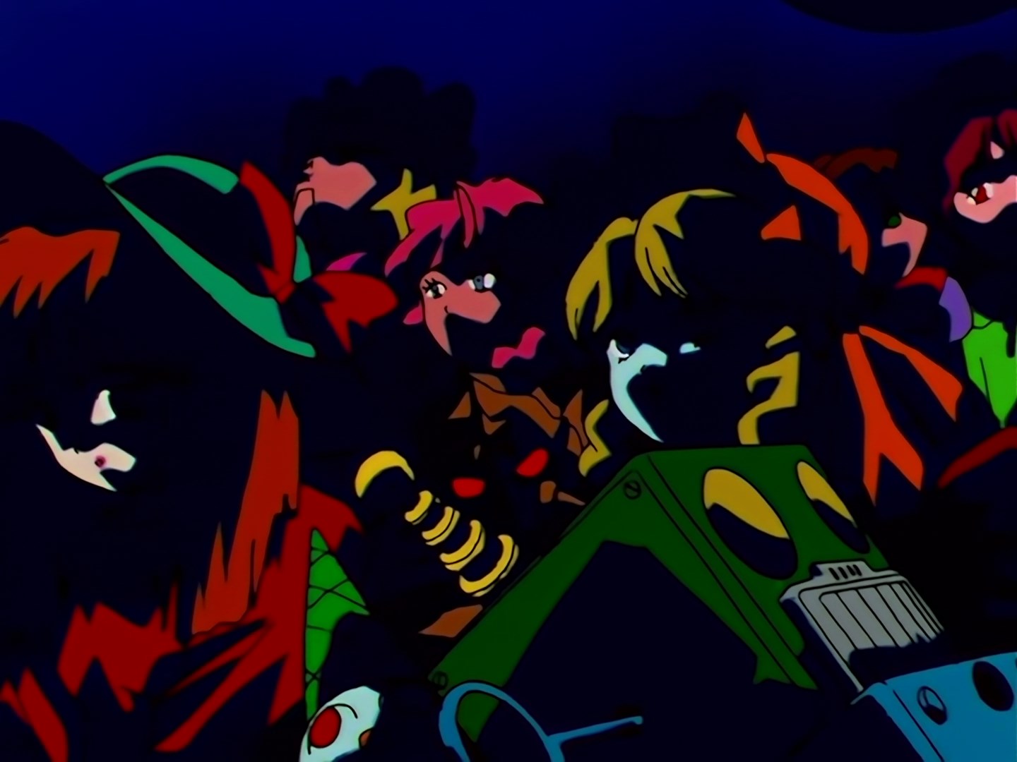 rusza na wojowniczki ze skakanką,dziewczynom udaje się odskoczyć na bok, ale Daimon biegnie dalej parkową alejką, nie zatrzymując się. Wojowniczki są zaskoczone, a Sailor Uranus stawia na ziemi Sailor Chibi Moon i biegnie do samochodu.