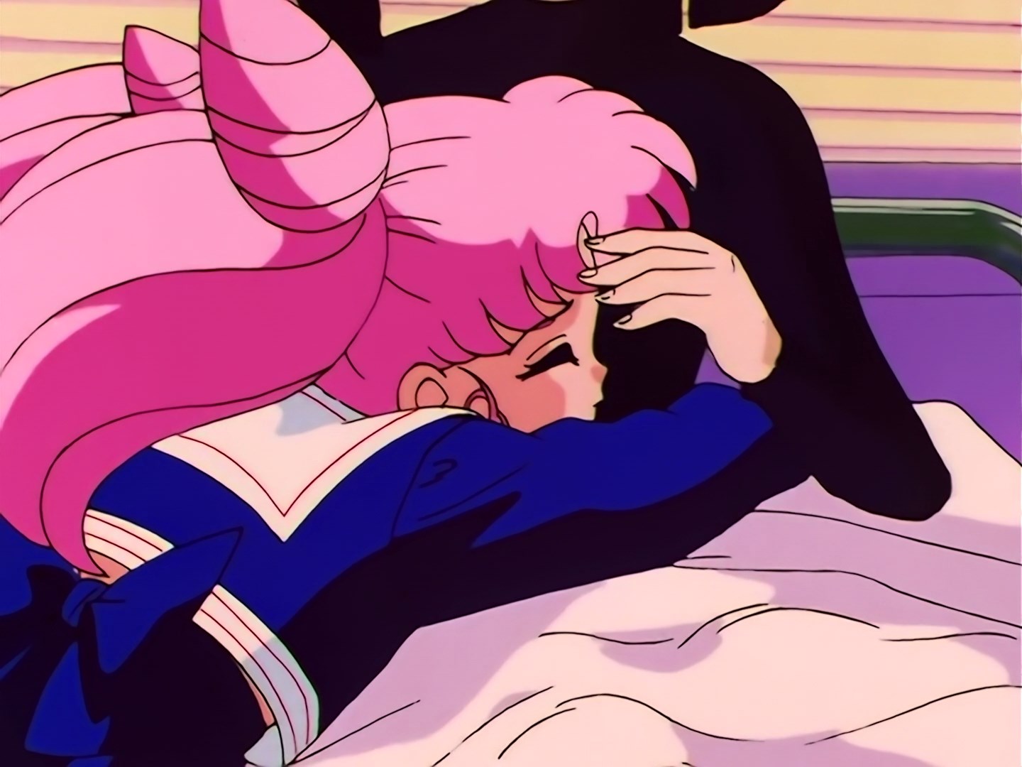 Hotaru leży teraz nieprzytomna na szpitalnym łóżku, a Chibiusa ma wyrzuty sumienia, że poszła ją odwiedzić. Uważa, że w przeciwnym wypadku, to wszystko by się nie wydarzyło. Usagi mówi jej, że to nieprawda, bo Hotaru uważa ją
