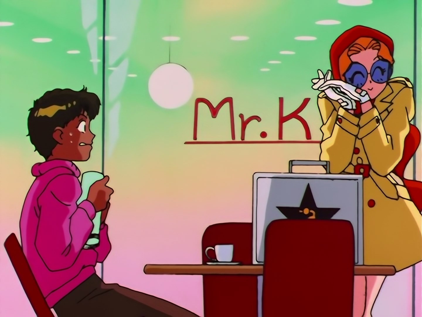 zrzuceniu monitora odbiera. Na początku jest niegrzeczna dla rozmówcy i pyta się, czego chce, bo jest aktualnie zajęta. Chwilę później rozmówca przedstawia się i okazuje się, że jest nim profesor. Mimete od razu zmienia ton i wita