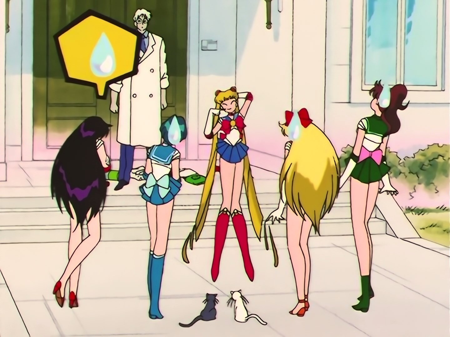 pomysły. Sailor Mercury wyjaśnia Sailor Moon, że jeśli będzie próbowała wyważyć drzwi siłą, to może naruszyć równowagę wymiaru, w którym aktualnie znajduje się dom. Sailor Mars zaczyna w końcu dogryzać Sailor Moon, a Sailor Mercury