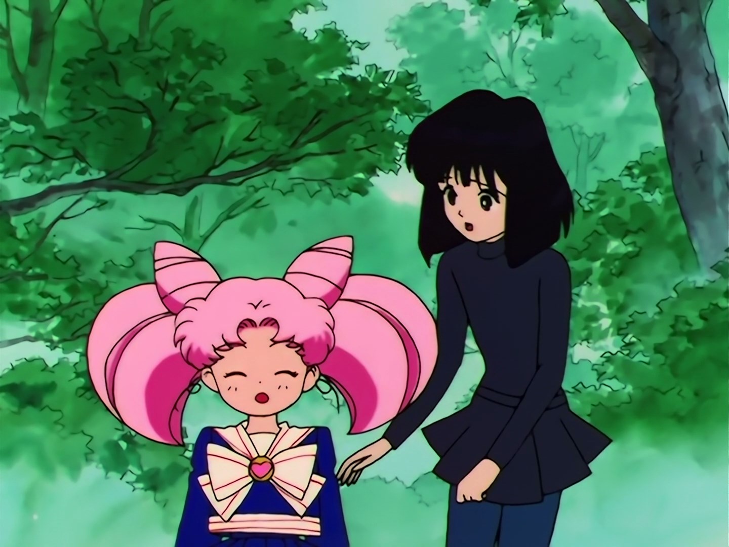 w innym wymiarze, bo tak naprawdę nie powinna była się nigdy urodzić. Prosi je, aby uratowały Chibiusę. Wojowniczki na spokojnie zapewniają ją, że uratują obie dziewczynki. Dodaje, że Hotaru jest przyjaciółką Chibiusy i nie mogą jej