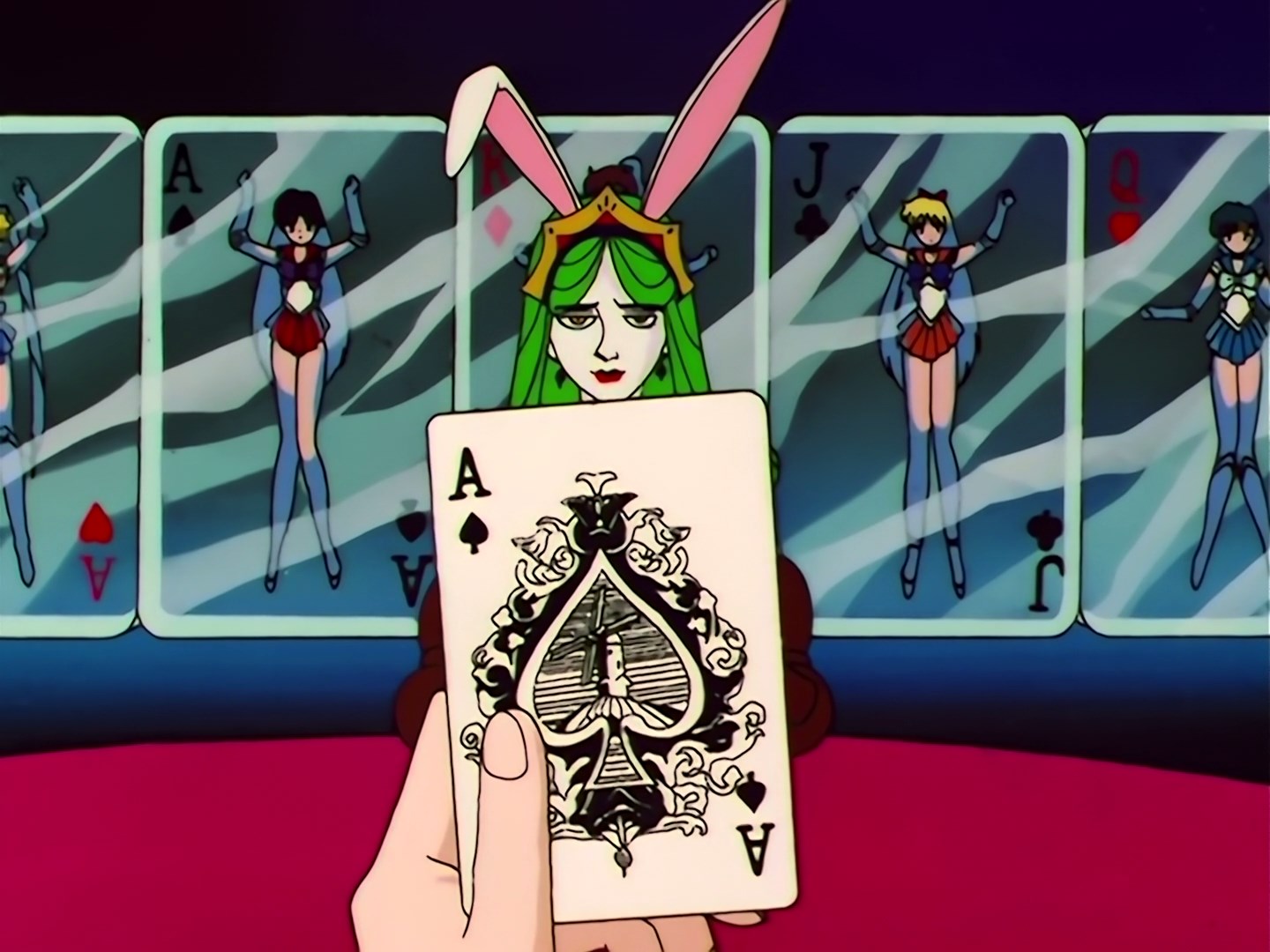jej przeciwniczki, ale do pojedynku zamierzają również stanąć Chibiusa i Hotaru. Daimon pyta się je, w co chcą zagrać, a Chibiusa odpowiada, że w Piotrusia. U-ikasaman siada przy stole i przetasowuje karty.