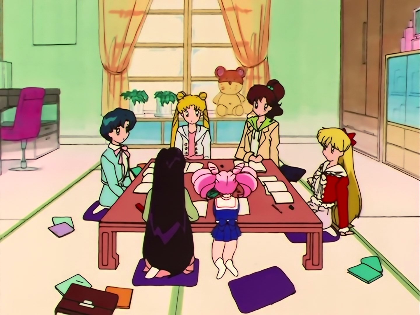 zajmować się właśnie takimi rzeczami. Chibiusa żartuję sobie i przymila się do Usagi nazywając ją swoją mamą, a Ami dodaje, że to dobrze, że Usagi zajmuje się edukacją przyszłej córki. Rei nie przyłącza się do przekomarzanek, ale w