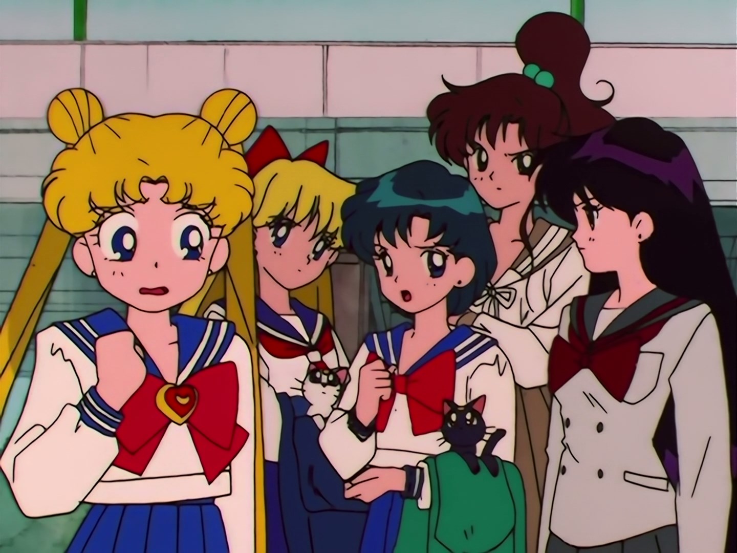 Pięć przyjaciółek razem z kotami przychodzi do Akademii Mugen. Usagi zauważa, że panuje tutaj dziwna atmosfera, Rei od razu coś wyczuwa, a Mako dodaje, że szkoła na pewno jest podejrzana. Artemis dostrzega baner wiszący na budynku,