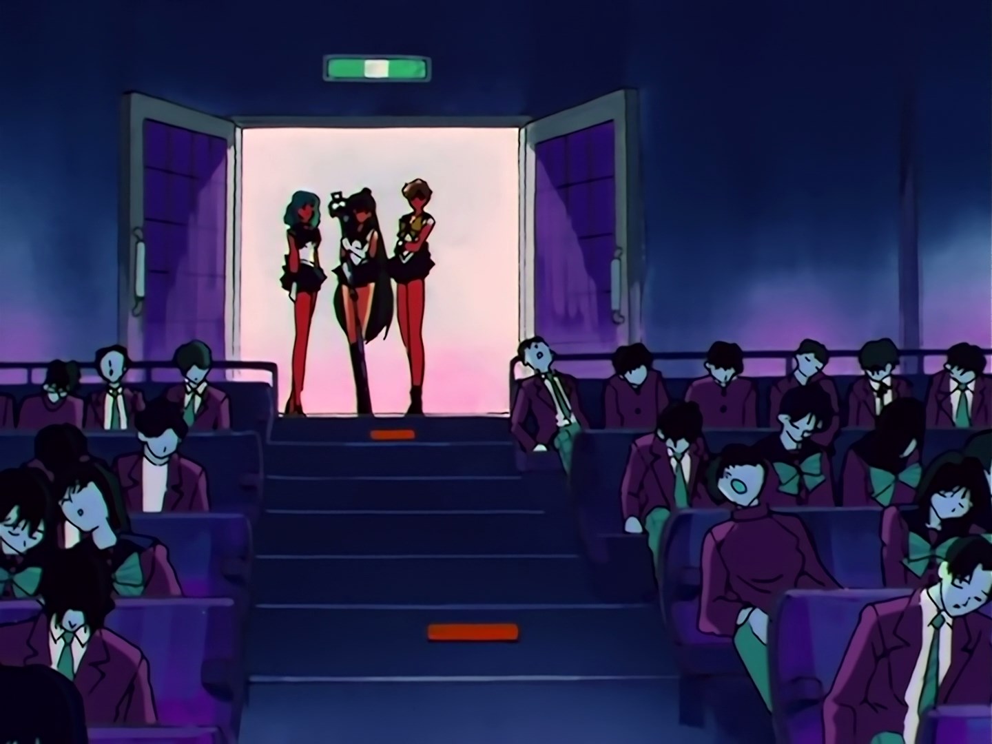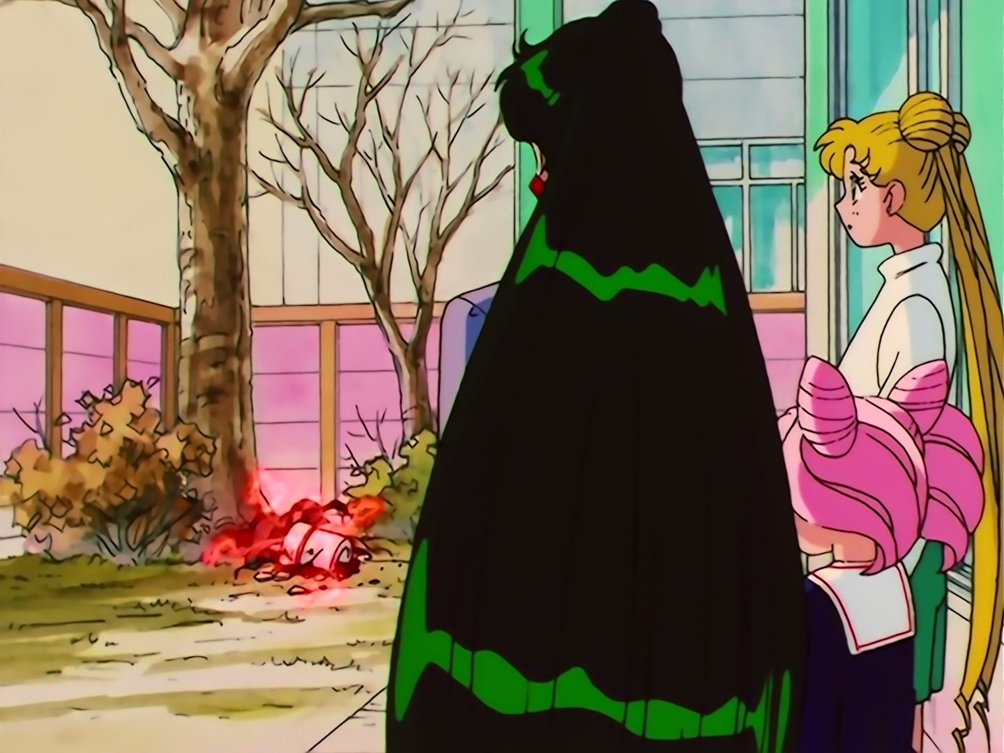 Przez tylne wejście zaglądają do środka Usagi, Chibiusa i Setsuna. Chibiusa zauważa, że teraz dobrze widać, że cała sytuacja nie była winą Hotaru. Wszystkie postanawiają, że muszą zająć się wrogiem i przemieniają się w wojowniczki.