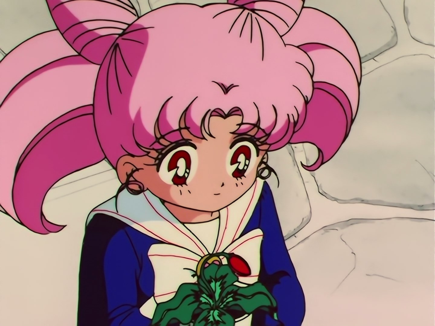Usagi podgląda obie dziewczyny przez uchylone drzwi wejściowe i widzi, jak Hotaru wręcza Chibiusie kwiat doniczkowy. Hotaru tłumaczy, że jest to kwiat przynoszący szczęście i że pomyślała, że pasowałby do Chibiusy. Dziewczynka