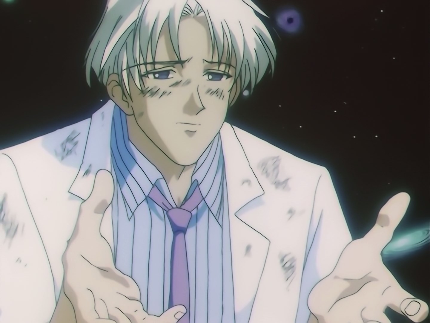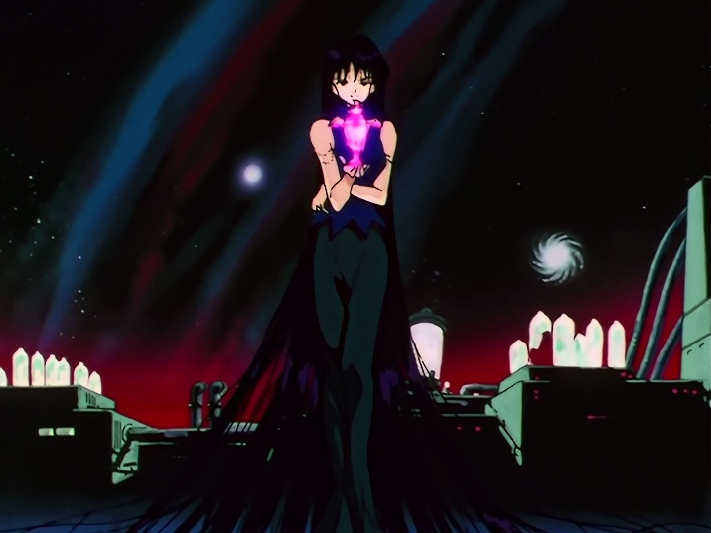 | Postacie występujące w odcinku: | Mistress 9/HotaruSailor Saturn, Sailor Moon, Sailor Uranus, Sailor Neptune, profesor Tomoe, Sailor Mercury, Sailor Mars, Sailor Jupiter, Sailor Venus, Chibiusa, Mamoru, Luna, Artemis. |
