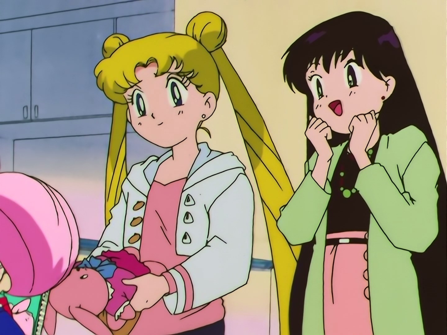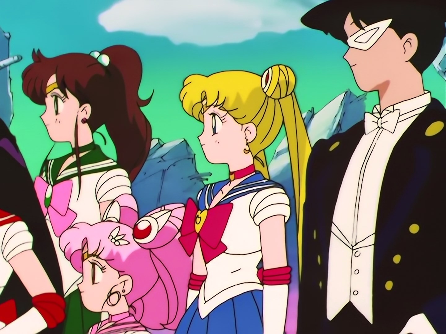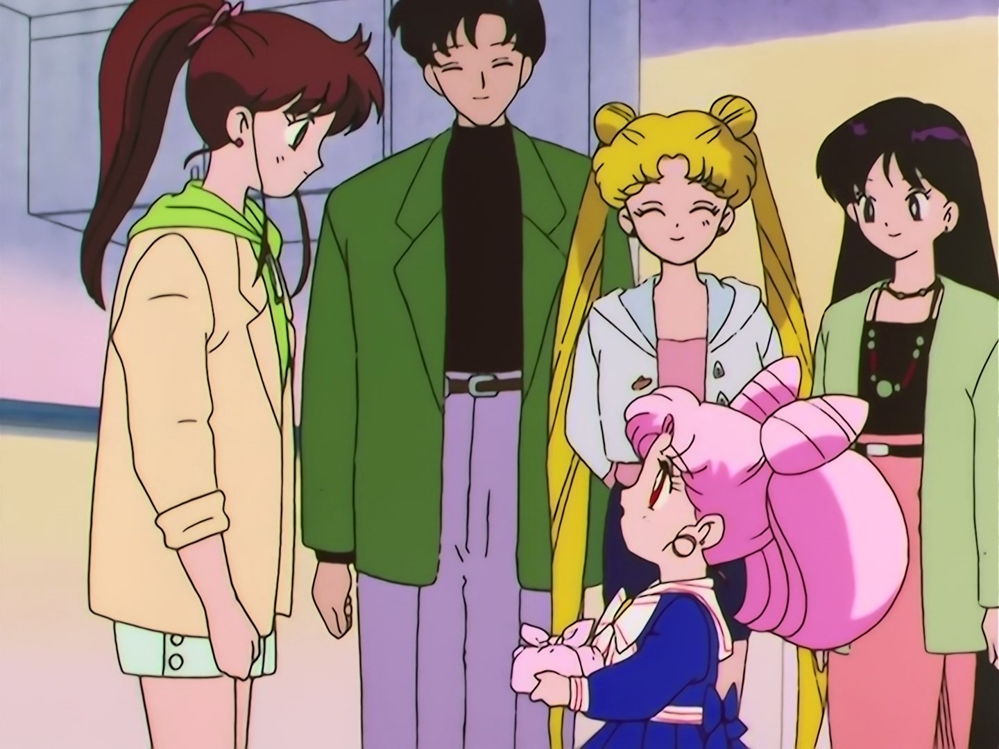 | Postacie występujące w odcinku: | Usagi, Mamoru, Chibiusa, Makoto, Ami, Rei, Minako, Luna, Artemis, Rangy - Daimon. |