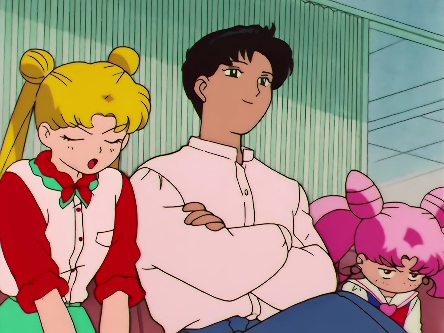 | Postacie występujące w odcinku: | Saori i Kobayashi - koledzy Mamoru ze studiów, Mamoru, Usagi, Chibiusa, Tigers Eye, Fish Eye, Hawks Eye, Puuko - Lemur, Pegaz. |