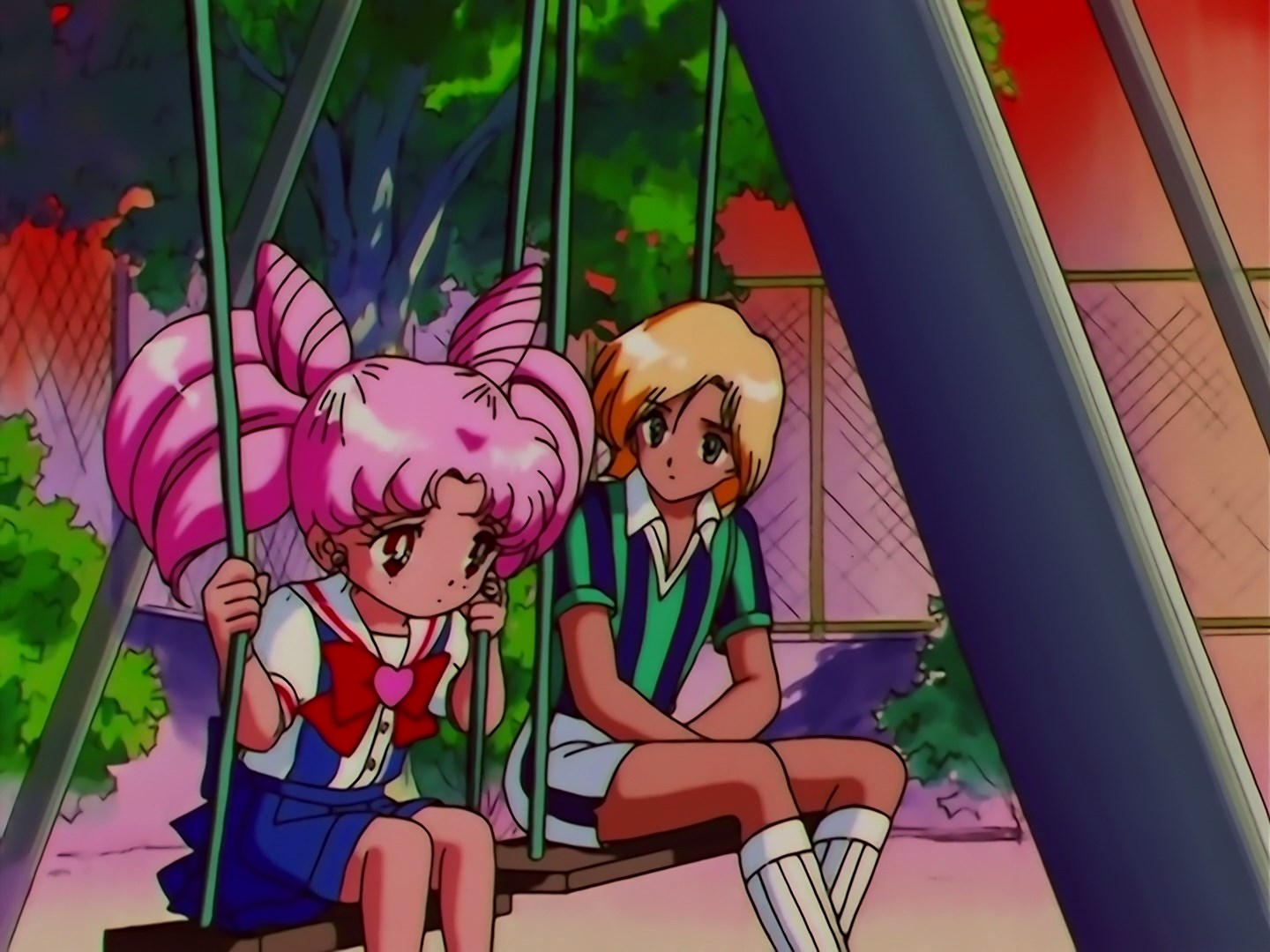 | Postacie występujące w odcinku: | Robert - przystojniak ze szkoły Chibiusy, Chibiusa, Momohara Momoko, Sarashina Kyuusuke, Pegaz, Usagi, Hawks Eye, Tigers Eye, Fish Eye, Ami, Rei, Makoto, Minako, Mawashitarou - Lemur, Mamoru. |