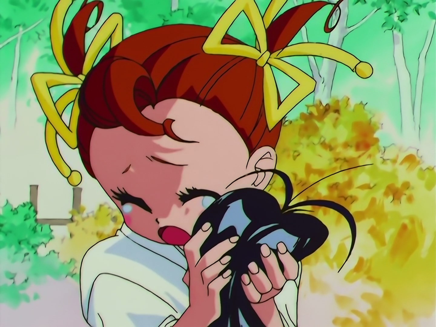 | Postacie występujące w odcinku: | Usagi, Chibiusa, Rei, Ami, Makoto, Minako, Nanako - dziewczynka, która chciała być podobna do Rei, Królowa Nehelenia, Zirconia, Cere Cere, Palla Palla, Ves Ves, Jun Jun, Luna, Artemis, Diana, Manemanemusume - Lemur, Pegaz. |