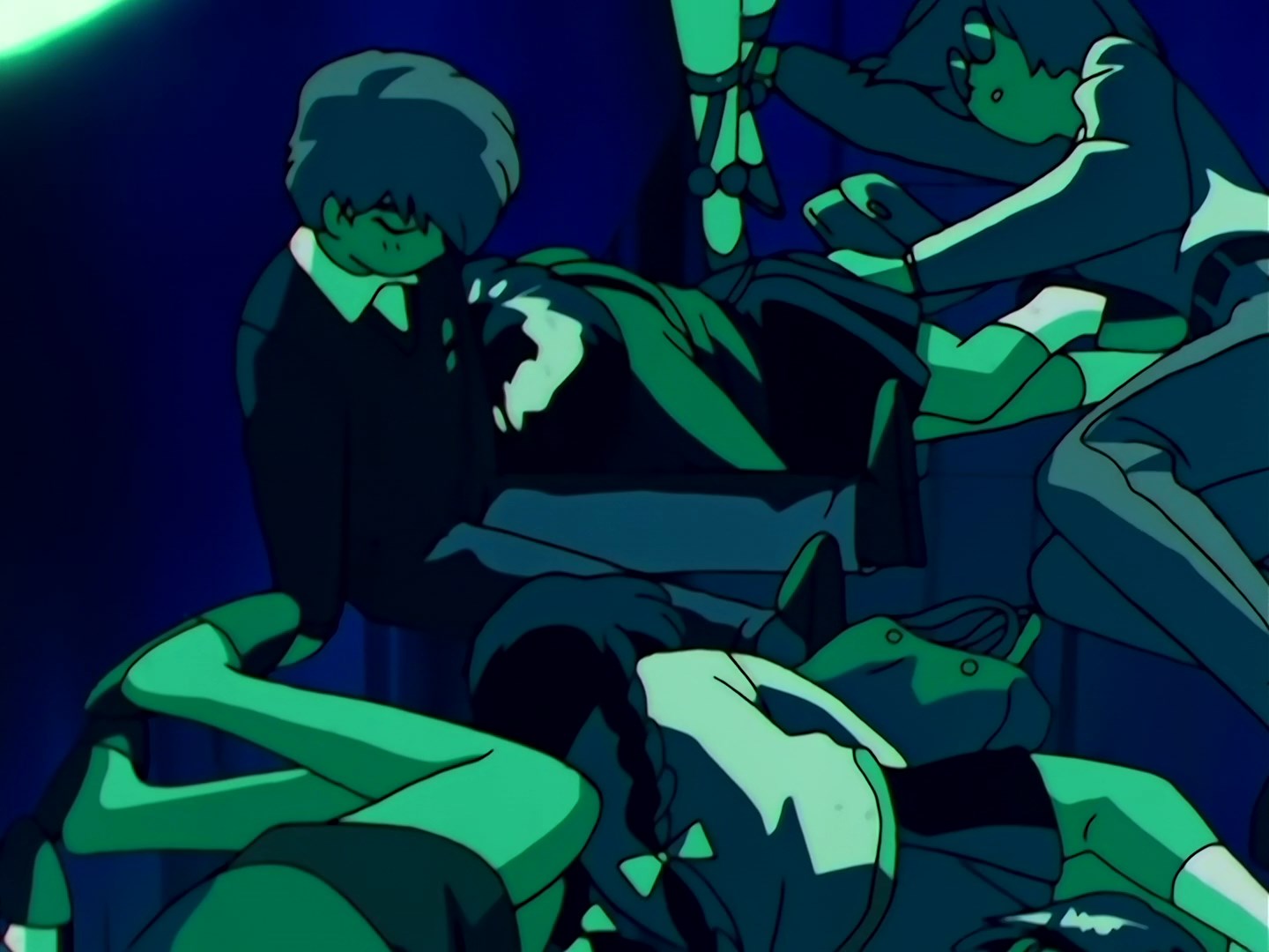 | Postacie występujące w odcinku: | Królowa Nehelenia, Zirconia, Cere Cere, Palla Palla, Ves Ves, Jun Jun, Usagi, Chibiusa, Ikuko - mama Usagi, Ami, Rei, Makoto, Minako, Mamoru, Garigari - Lemur, Pegaz. |