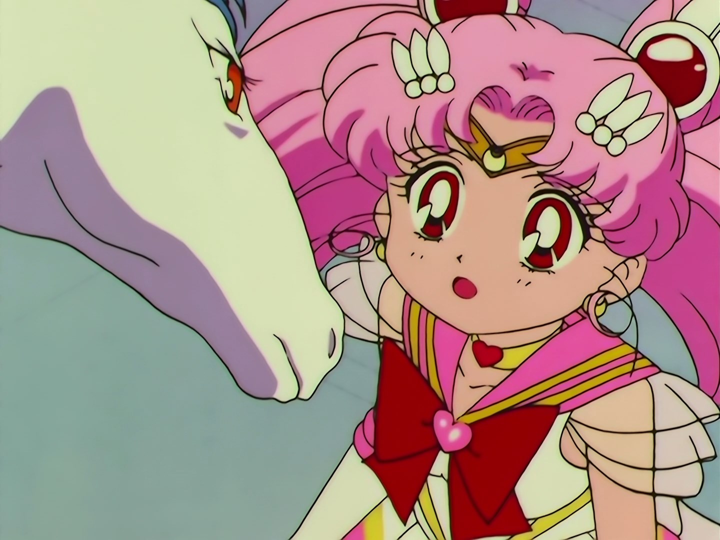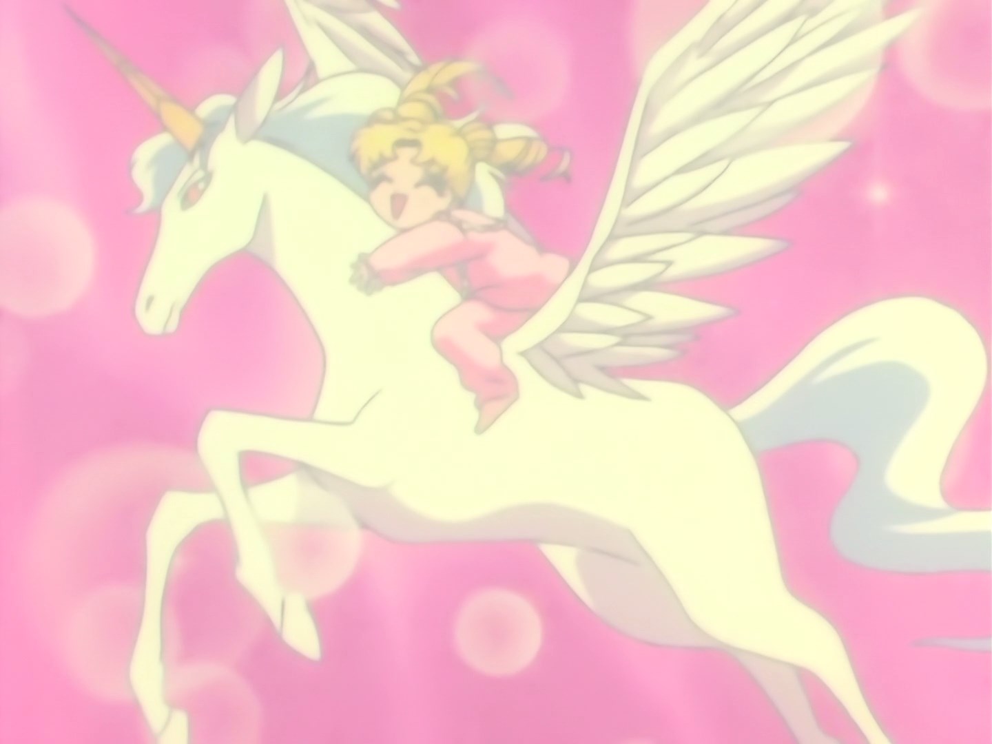 | Postacie występujące w odcinku: | Tuxedo Kamen, Super Sailor Chibi Moon, Super Sailor Moon, Super Sailor Mercury, Super Sailor Mars, Super Sailor Jupiter, Super Sailor Venus, Pegaz, Królowa Nehelenia, Luna, Artemis, Diana, Cere Cere, Palla Palla, Ves Ves, Jun Jun, Zirconia. |