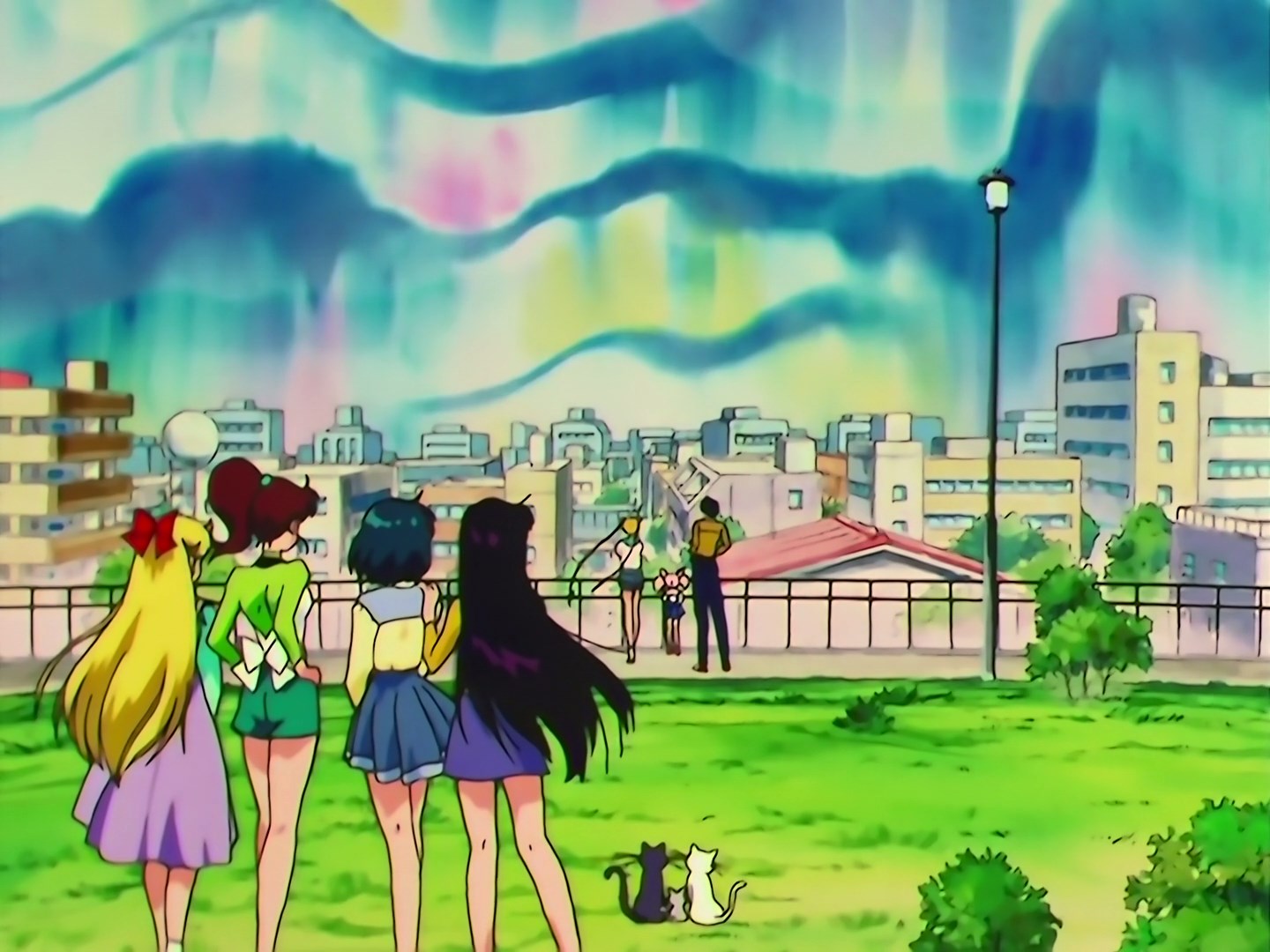 | Postacie występujące w odcinku: | Królowa Nehelenia, Super Sailor Chibi Moon, Super Sailor Moon, Super Sailor Mercury, Super Sailor Mars, Super Sailor Jupiter, Super Sailor Venus, Helios, Mamoru, Cere Cere, Palla Palla, Ves Ves, Jun Jun, Luna, Artemis, Diana. |