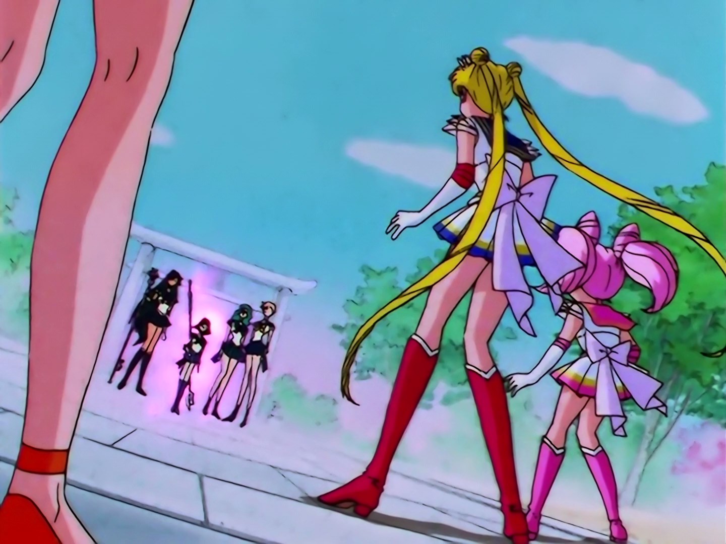 | Przemiany użyte w odcinku: | Moon Crisis Make Up! Mercury Crystal Power Make Up! Mars Crystal Power Make Up! Jupiter Crystal Power Make Up! Venus Crystal Power Make Up! Moon Eternal Make Up! |