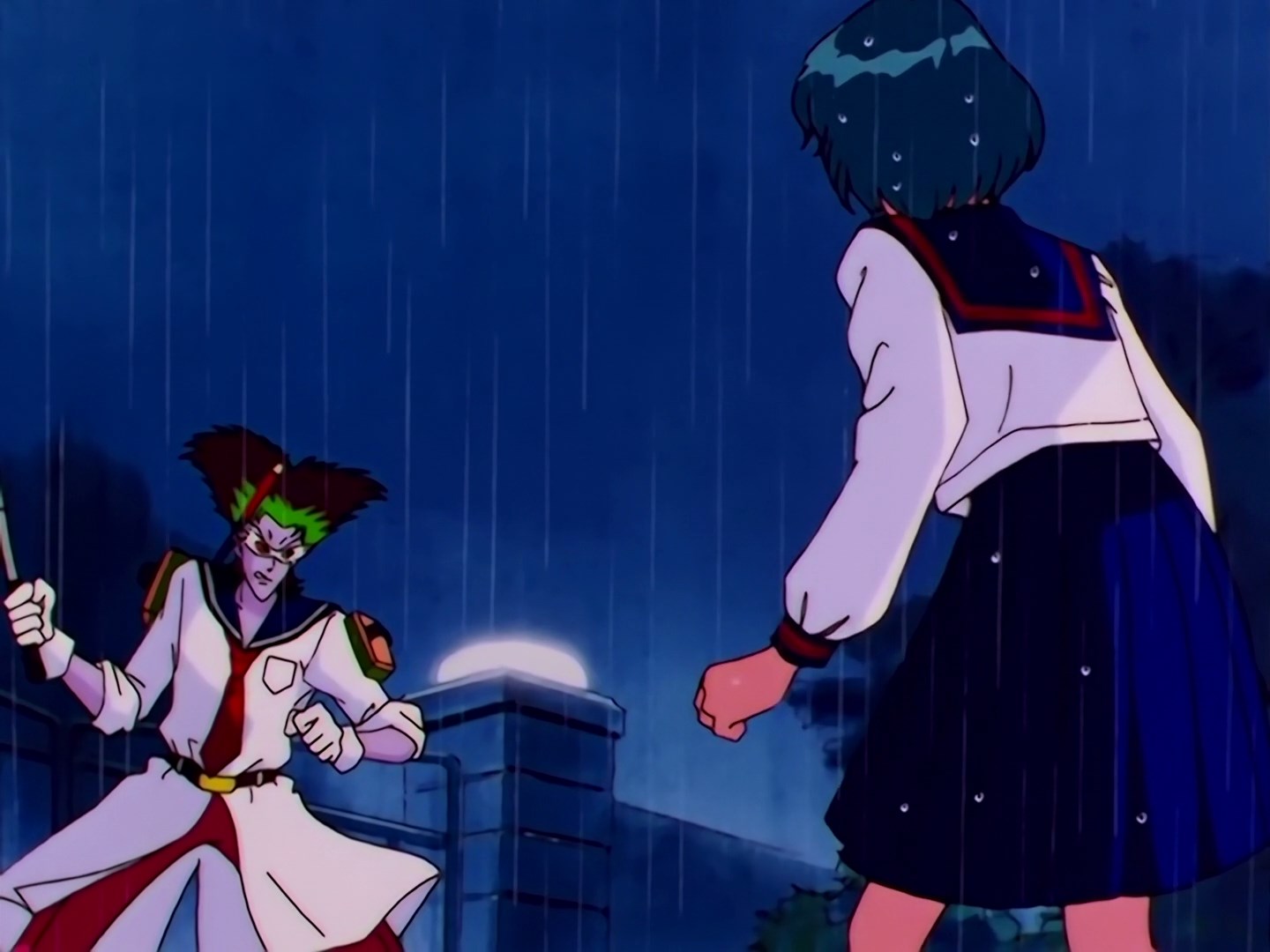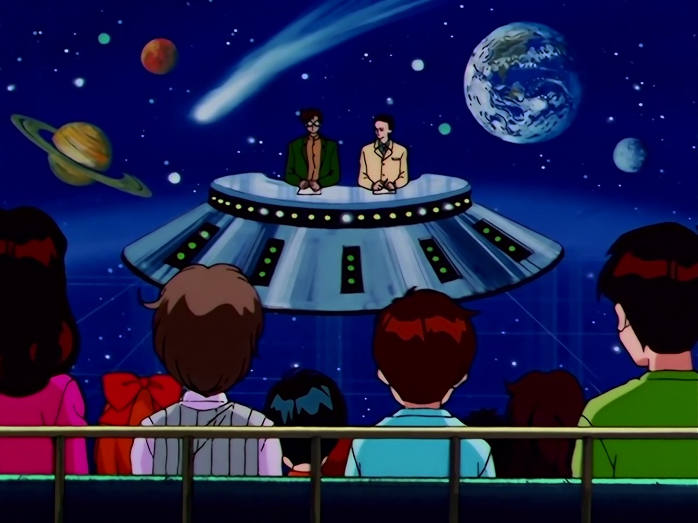 | Postacie występujące w odcinku: | Usagi, Makoto, Minako, Taiki, Ami, Wataru Amanogawa - nauczyciel, który odkrył kometę, Rei, Sailor Iron Mouse, Seiya, Yaten, Sailor Teacher - Fag. |