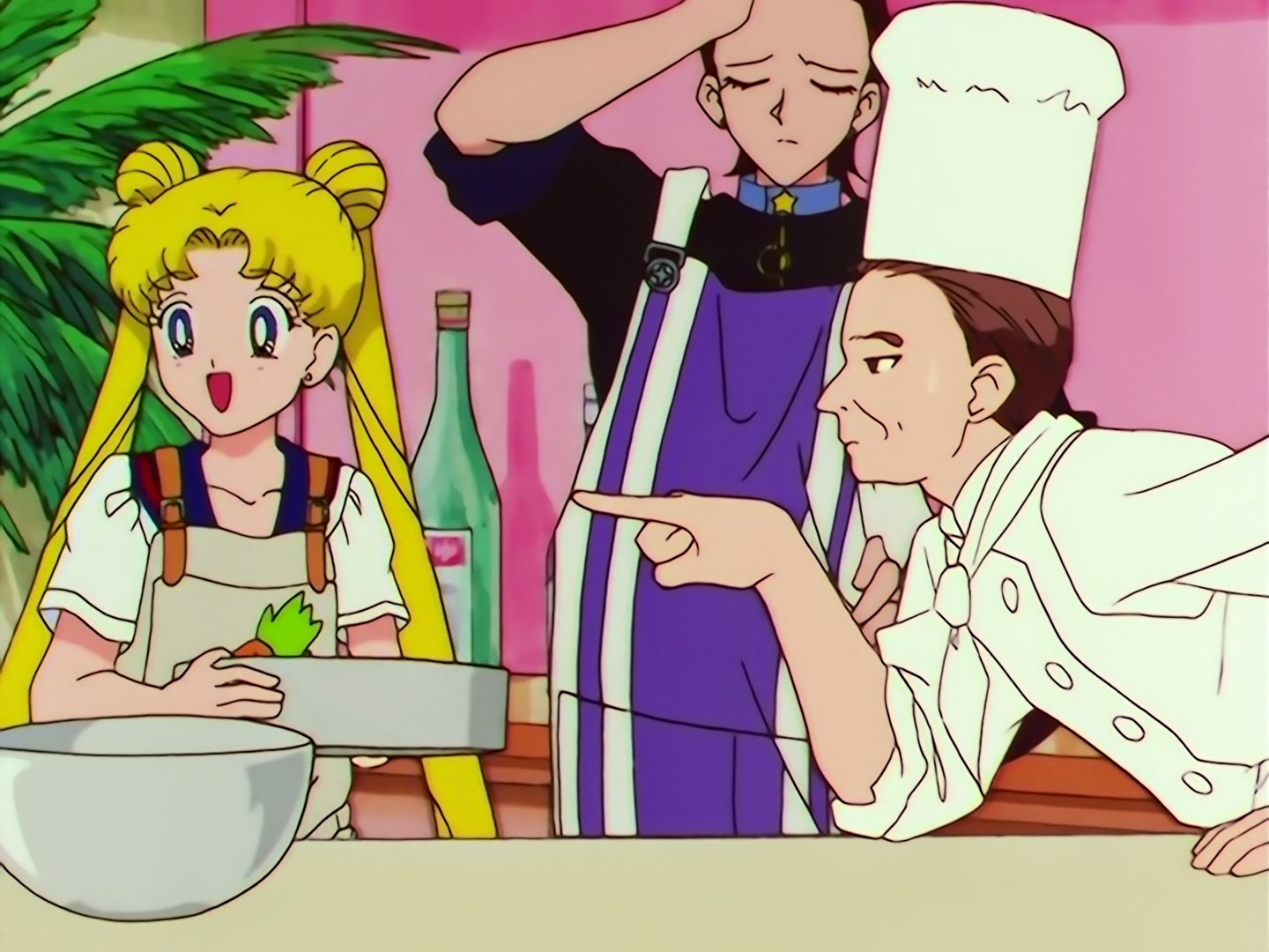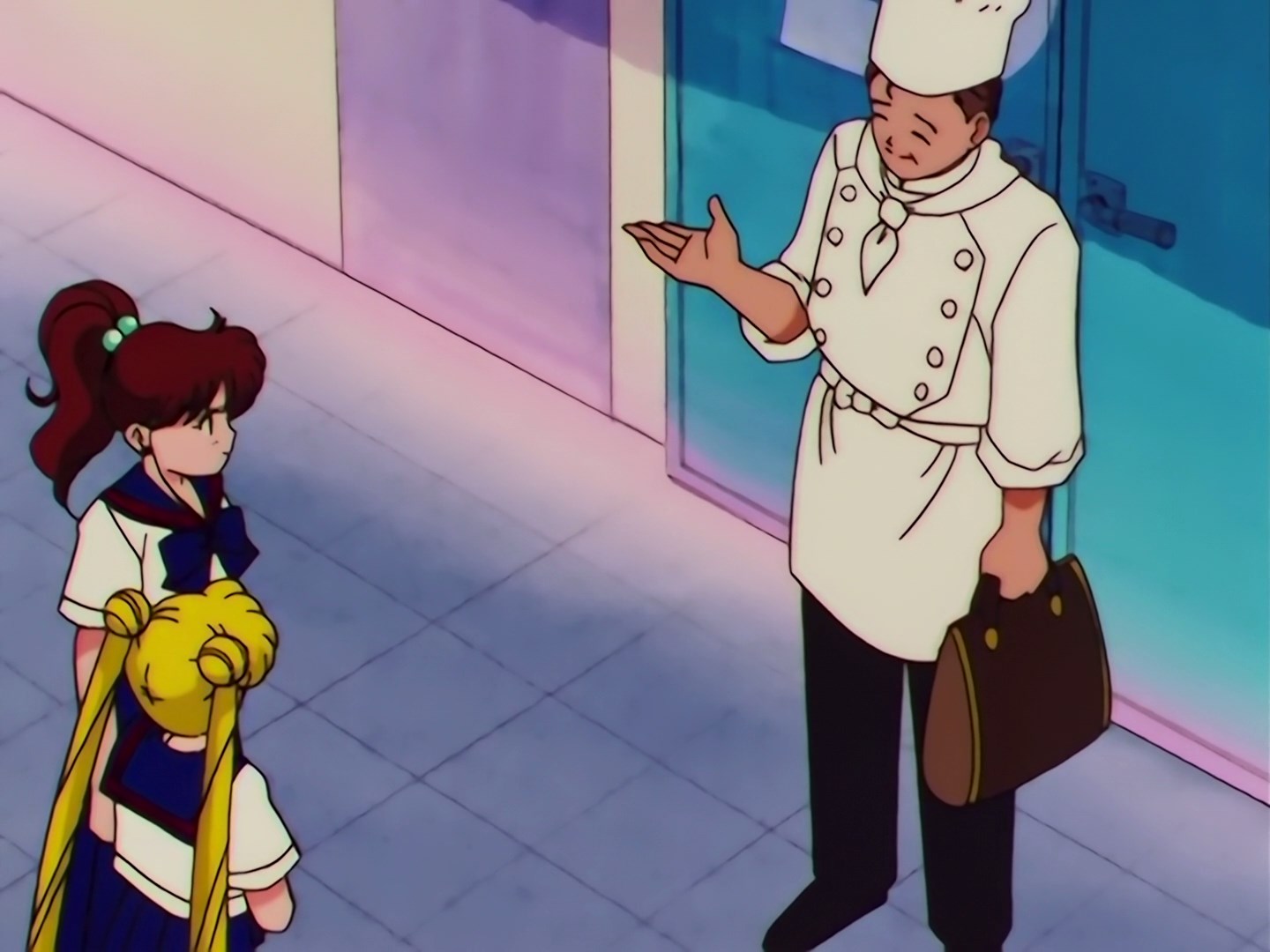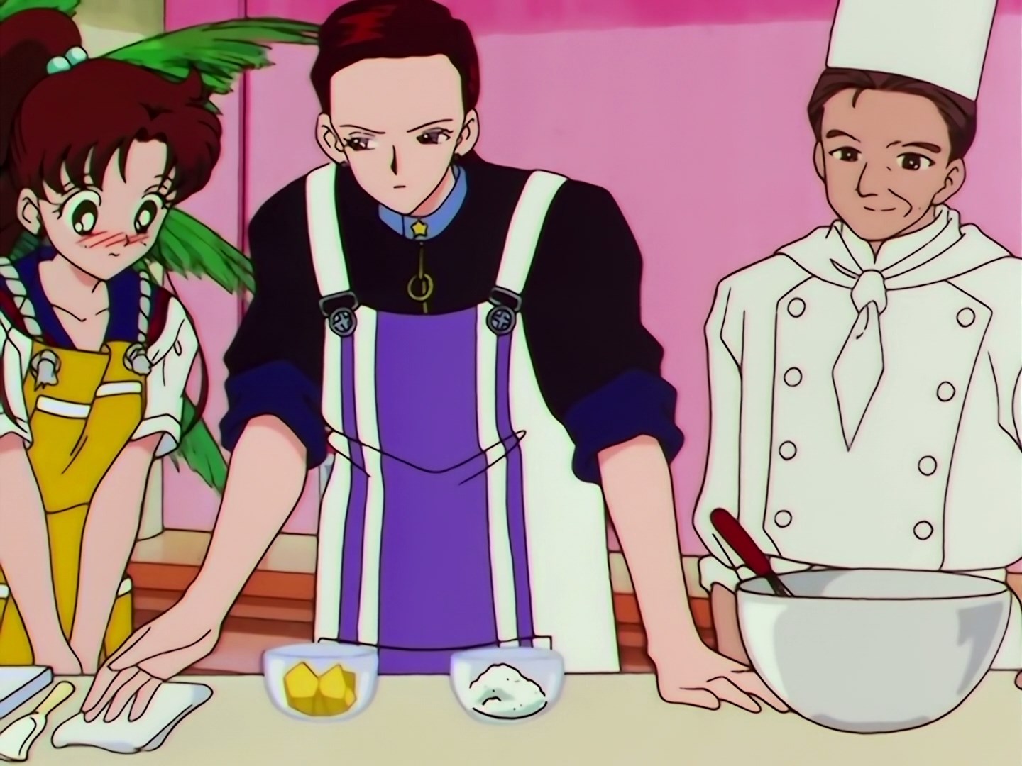 | Postacie występujące w odcinku: | Usagi, Haruka, Michiru, Seiya, Yaten, Taiki, Makoto, Sailor Iron Mouse, Sailor Galaxia, Yoshinogawa Tetsurou - szef kuchni prowadzący program w telewizji, Ami, Rei, Minako, Luna, Artemis, Sailor Chef - Fag. |