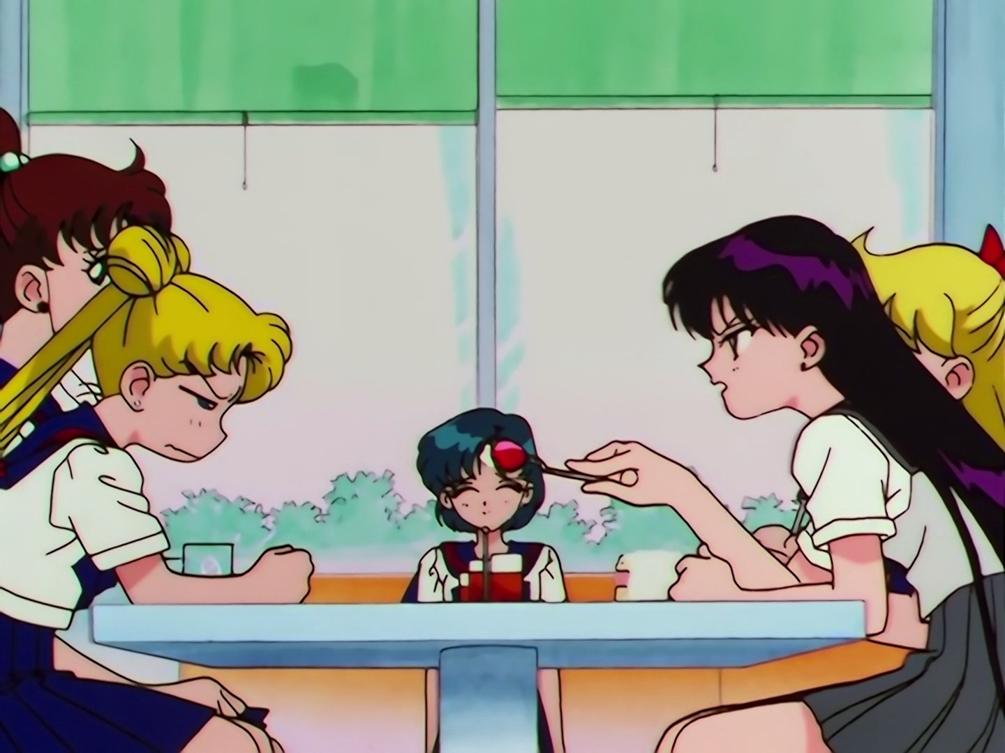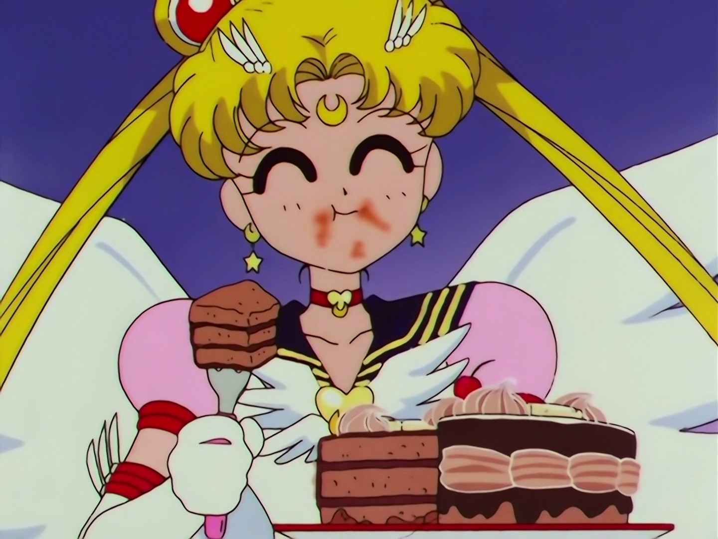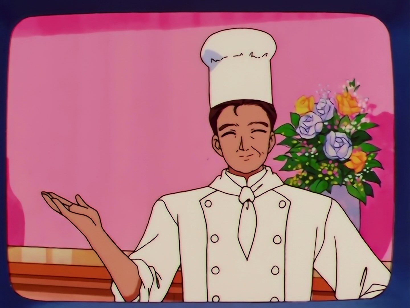 | Postacie występujące w odcinku: | Usagi, Haruka, Michiru, Seiya, Yaten, Taiki, Makoto, Sailor Iron Mouse, Sailor Galaxia, Yoshinogawa Tetsurou - szef kuchni prowadzący program w telewizji, Ami, Rei, Minako, Luna, Artemis, Sailor Chef - Fag. |