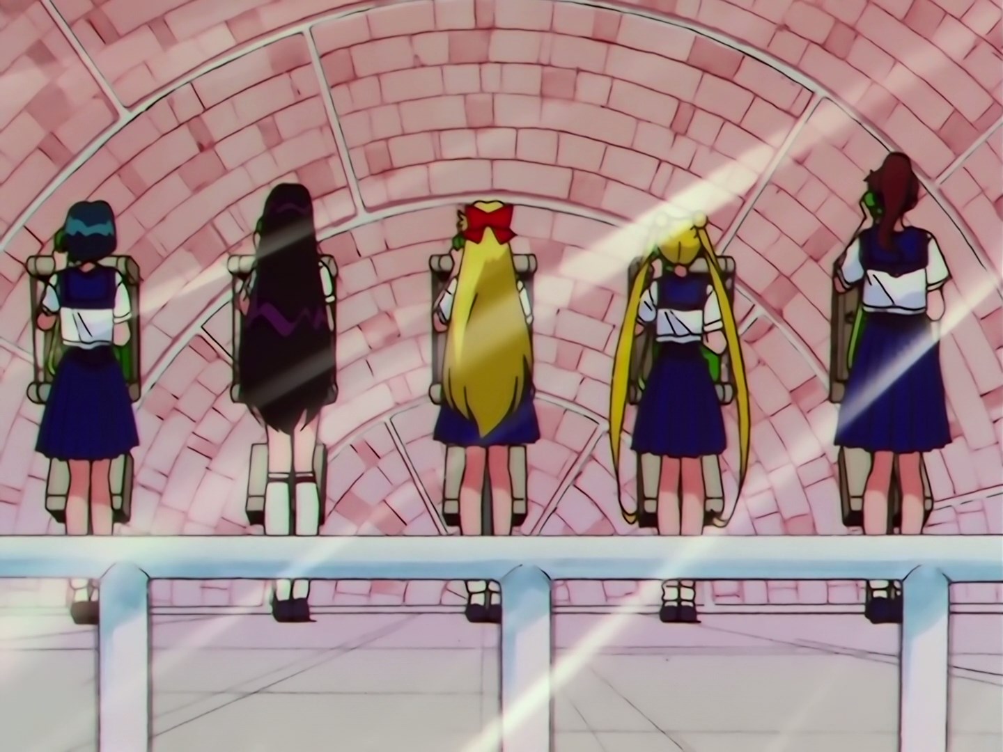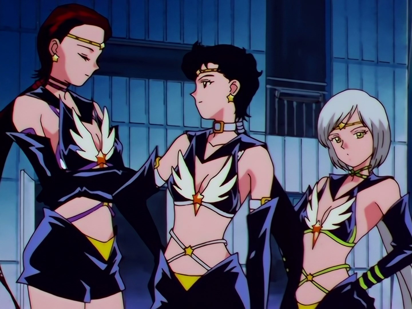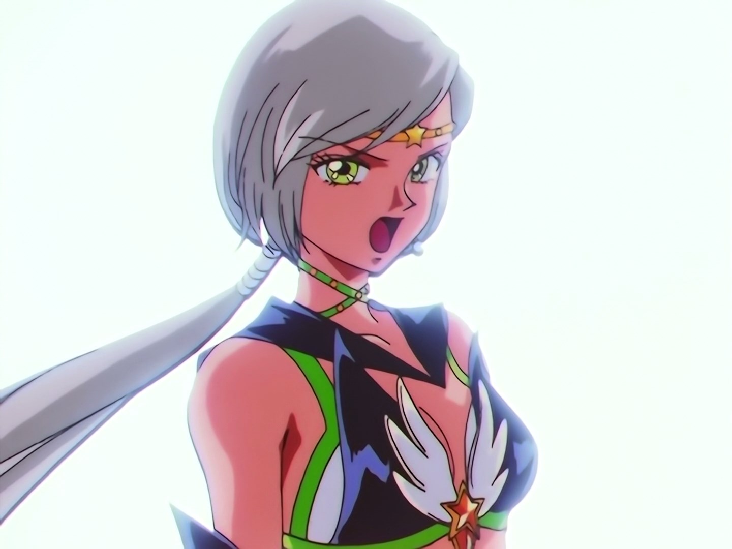 | Postacie występujące w odcinku: | Usagi, Ami, Rei, Makoto, Minako, Haruka, Michiru, Sailor Iron Mouse, Sailor Galaxia, Sailor Aluminum Siren, Sailor Lead Crow, Seiya, Yaten, Taiki, Garayan - dyrygent, Sailor Conductor - Fag. |