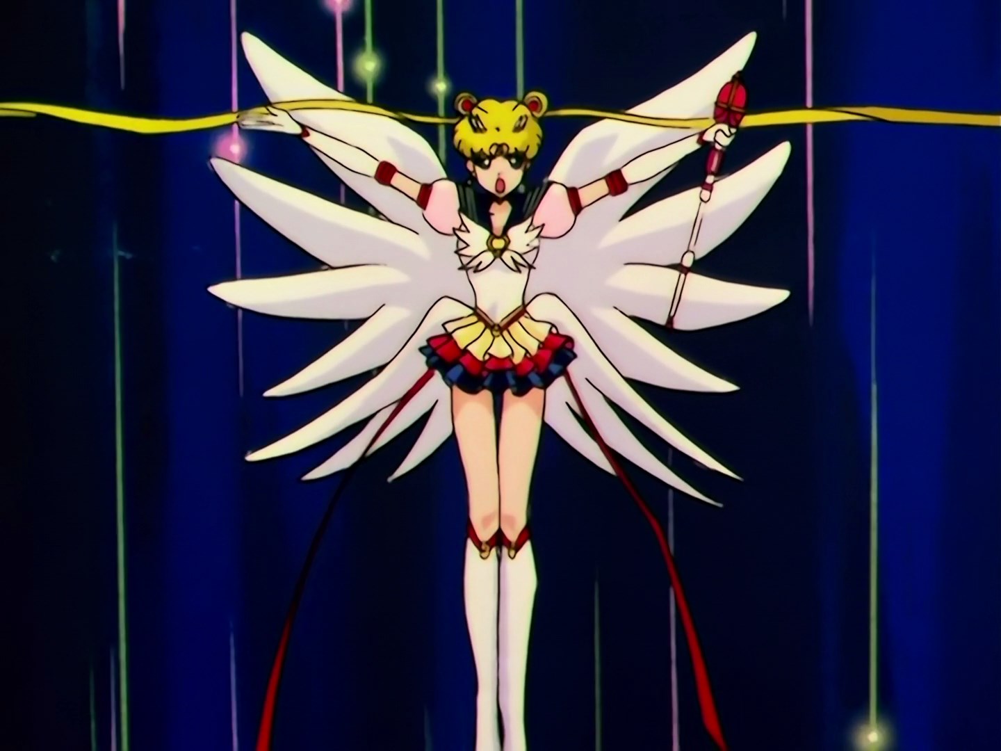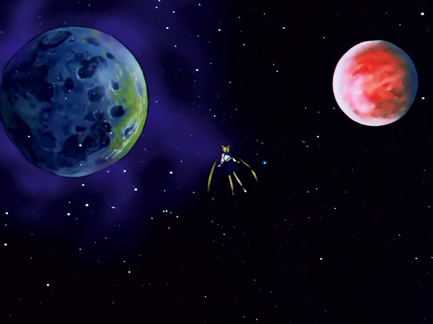 | Postacie występujące w odcinku: | Yaten, Taiki, Haruka, Setsuna, MIchiru, Seiya, Usagi, Minako, Ami, Makoto, Sailor Tin Nyanko, Sailor Lead Crow, Luna, Sailor Amuse - Fag. |