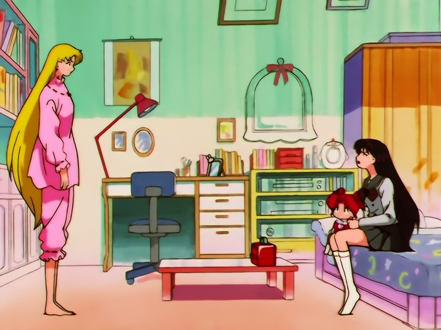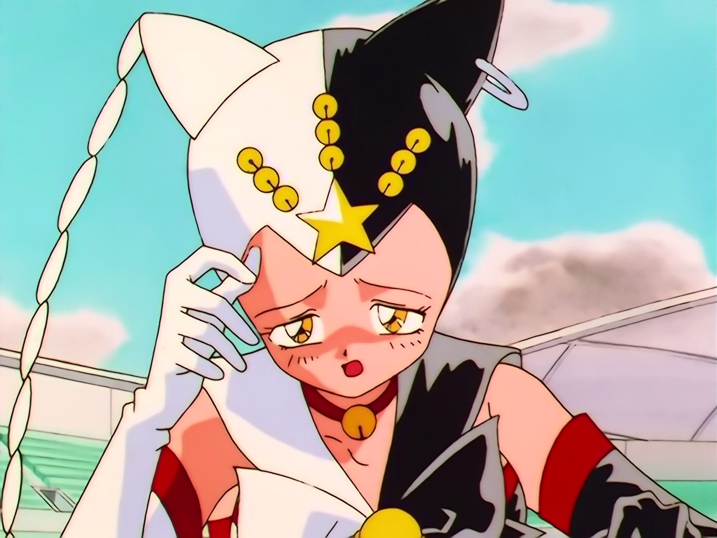 | Postacie występujące w odcinku: | Rei, Usagi, Chibi Chibi, Księżniczka Kakyuu, Yaten, Seiya, Taiki, Ami, Makoto, Minako, Haruka, Michiru, Sailor Tin Nyanko, Sailor Galaxia. |