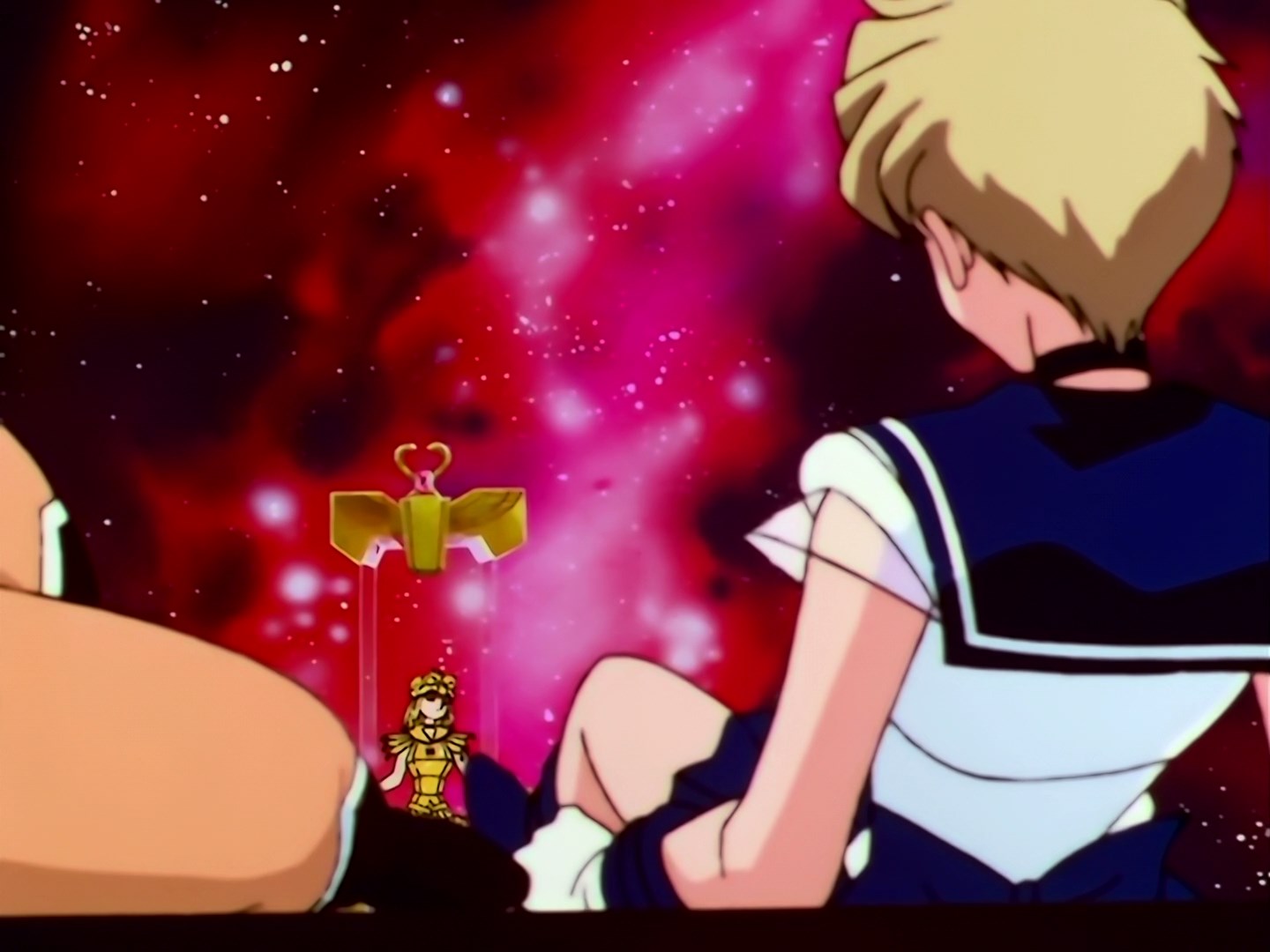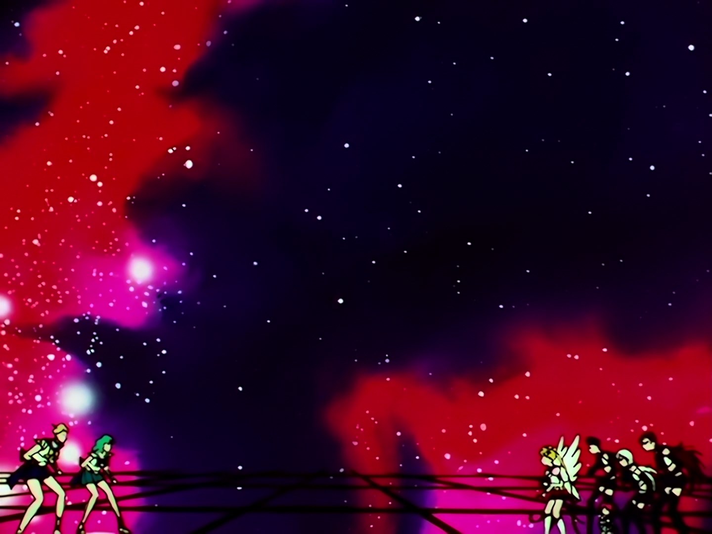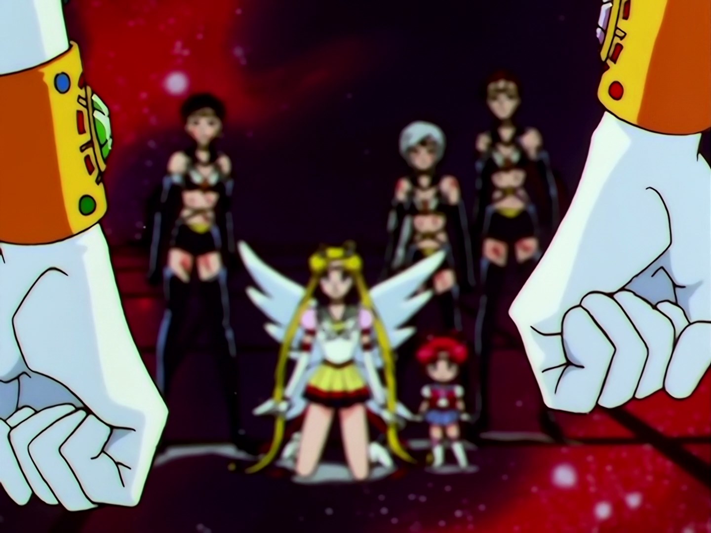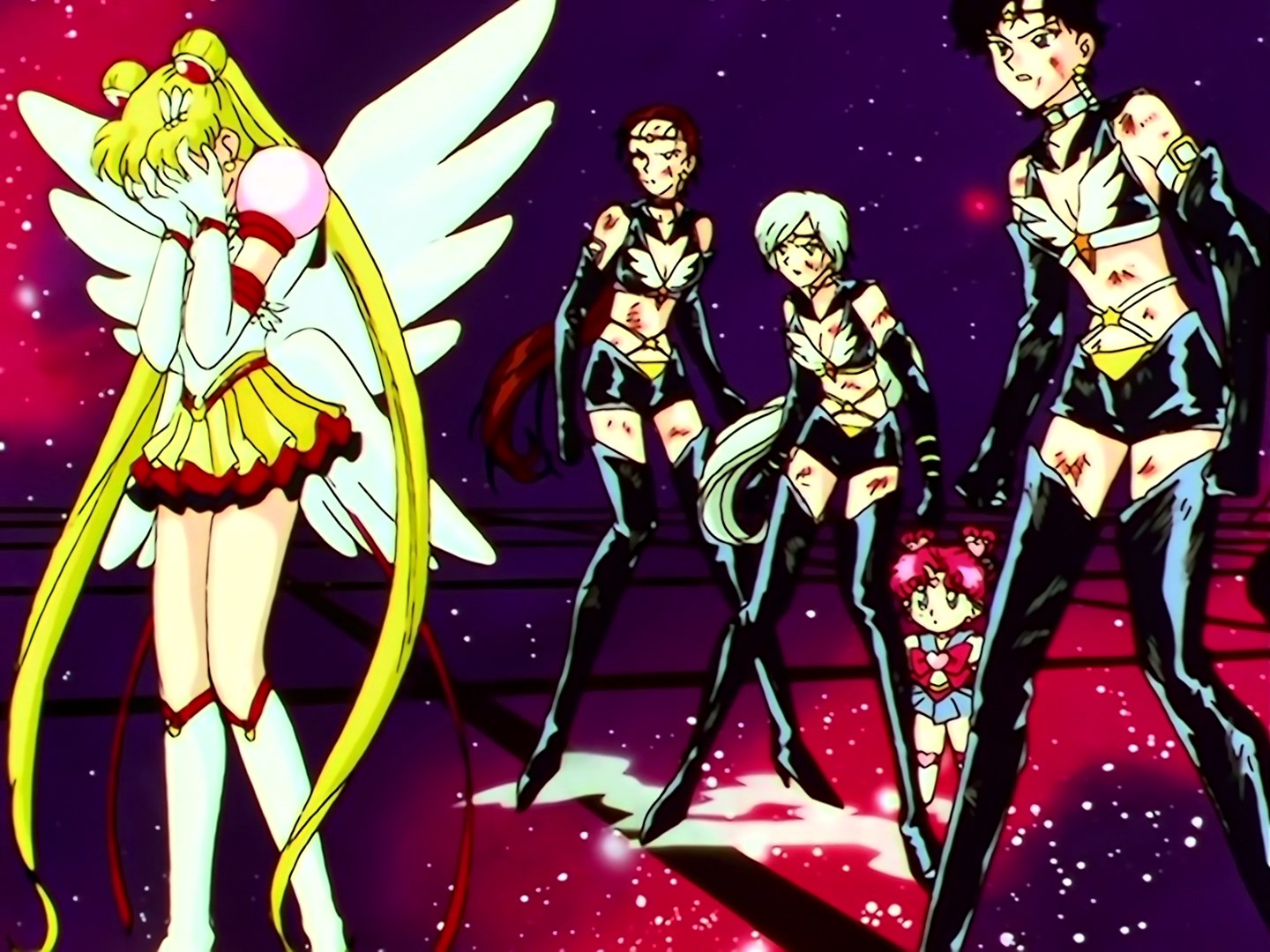 | Postacie występujące w odcinku: | Sailor Galaxia, Sailor Star Fighter, Sailor Star Maker, Sailor Star Healer, Eternal Sailor Moon, Sailor Chibi Chibi Moon, Tuxedo Kamen, Super Sailor Saturn, Super Sailor Pluto, Super Sailor Neptune, Super Sailor Uranus. |