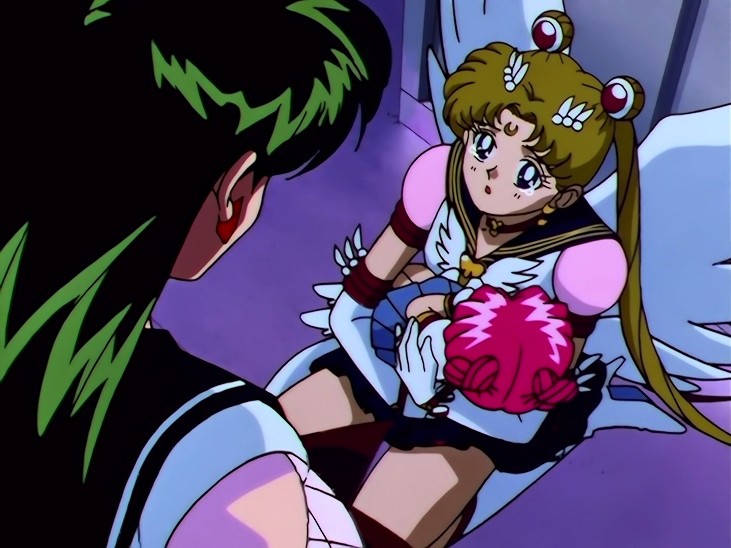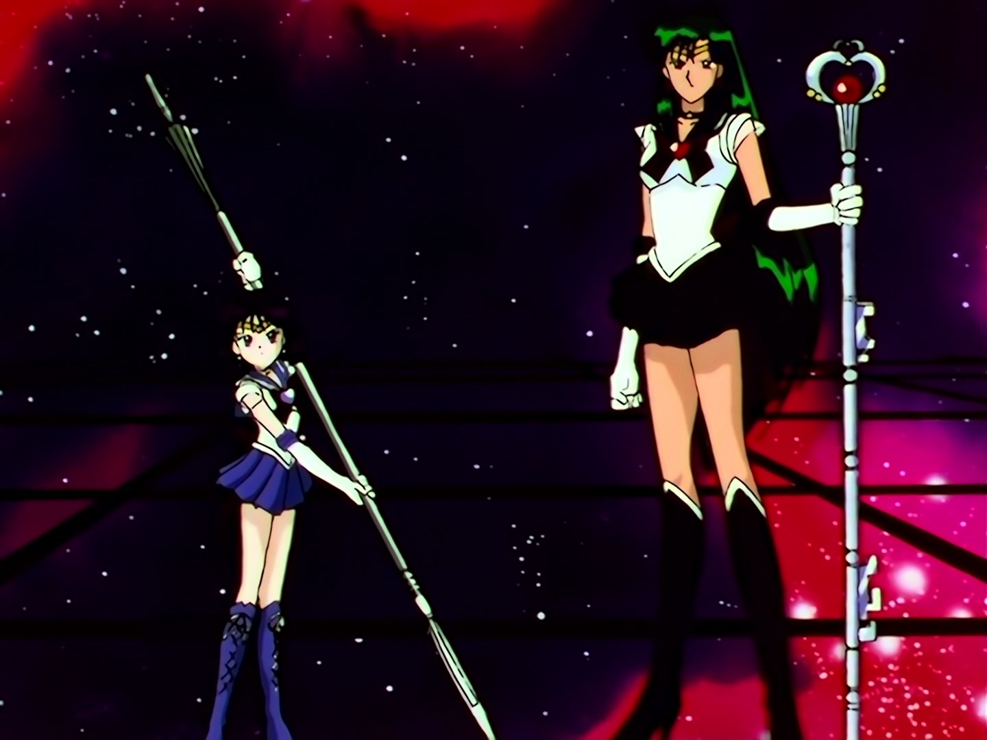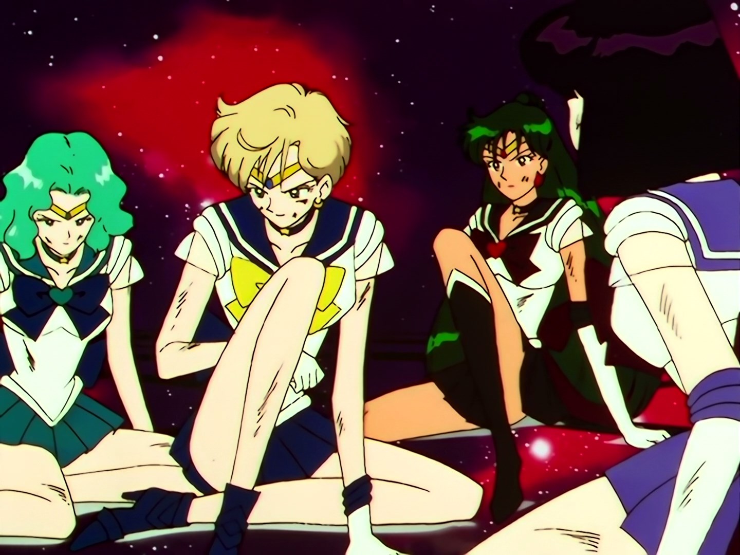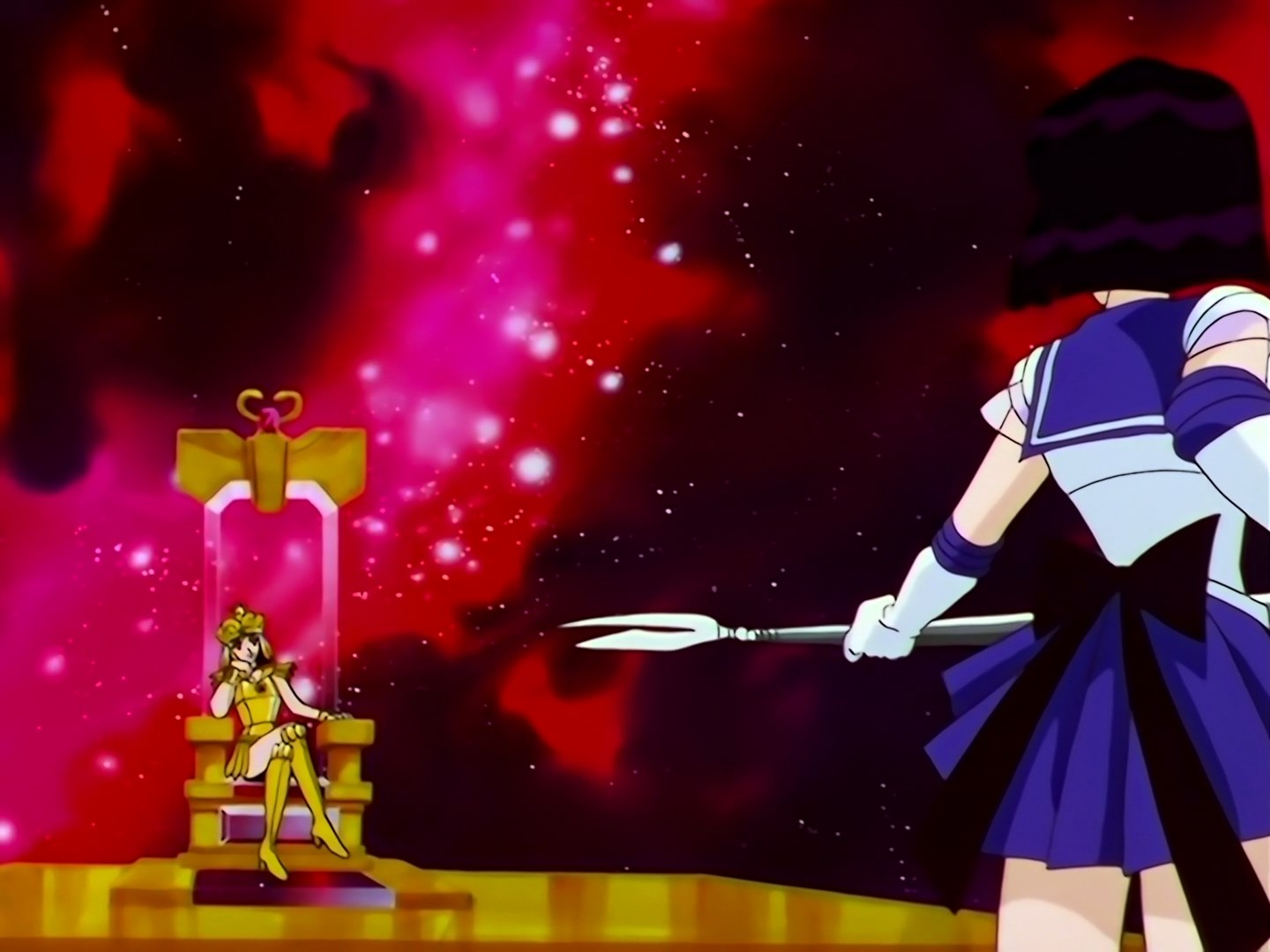 | Postacie występujące w odcinku: | Sailor Galaxia, Sailor Star Fighter, Sailor Star Maker, Sailor Star Healer, Eternal Sailor Moon, Sailor Chibi Chibi Moon, Tuxedo Kamen, Super Sailor Saturn, Super Sailor Pluto, Super Sailor Neptune, Super Sailor Uranus. |