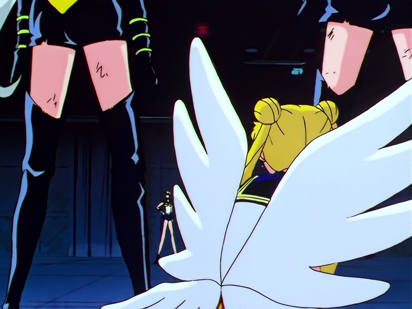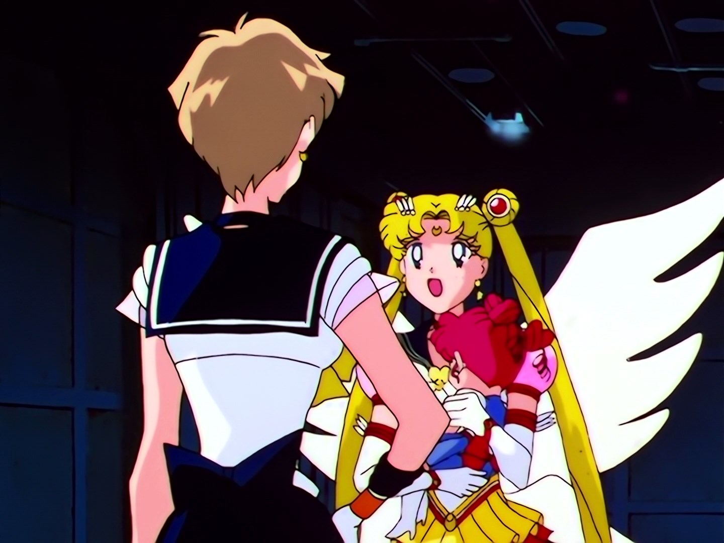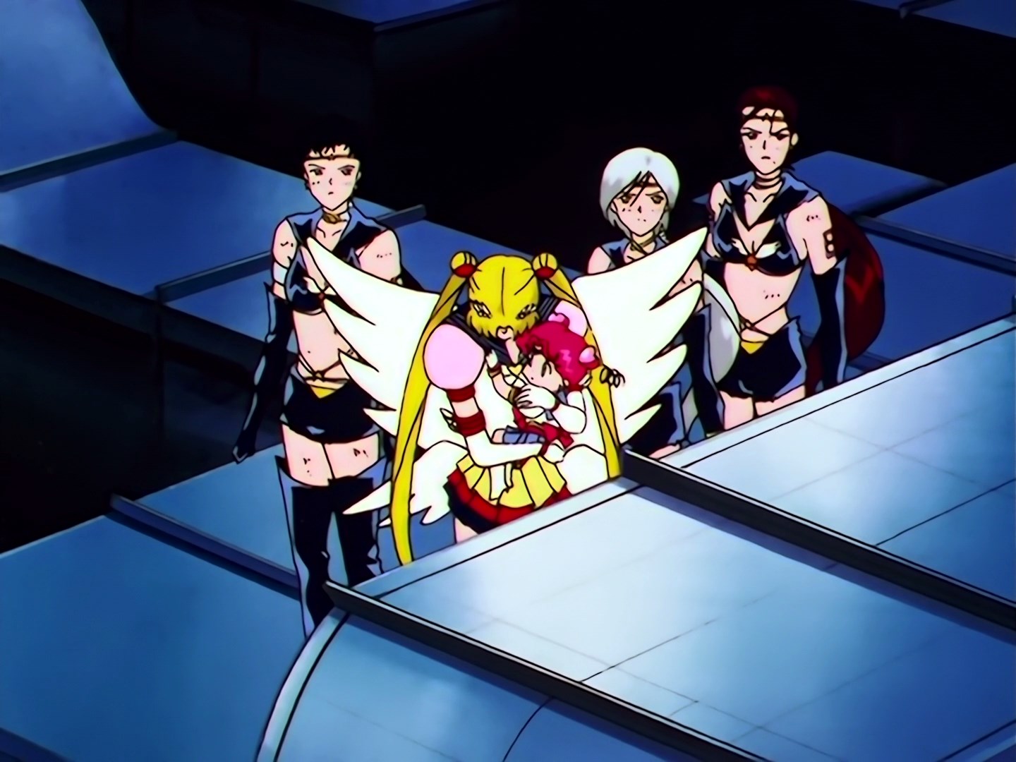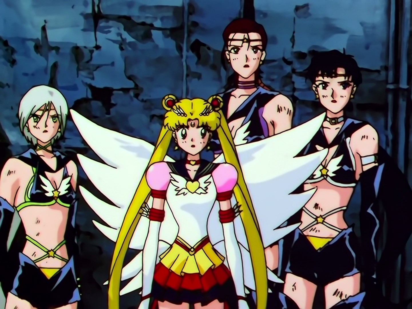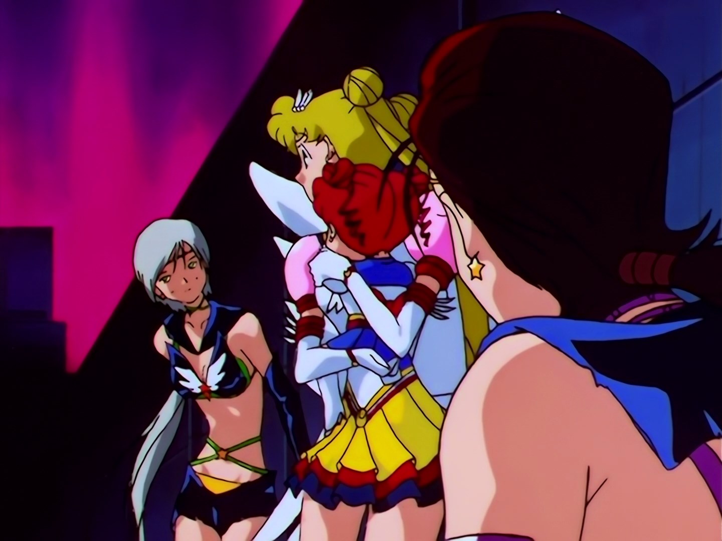 | Postacie występujące w odcinku: | Sailor Galaxia, Super Sailor Neptune, Super Sailor Uranus, Eternal Sailor Moon, Sailor Chibi Chibi Moon, Sailor Star Fighter, Sailor Star Maker, Sailor Star Healer. |