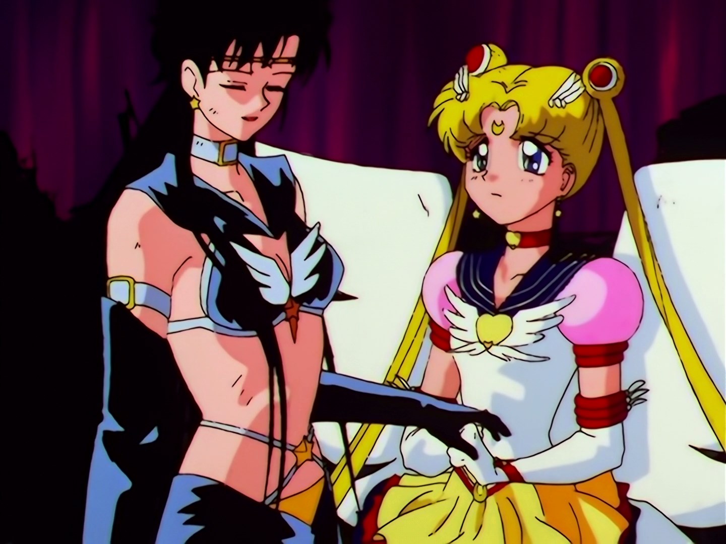 | Postacie występujące w odcinku: | Sailor Galaxia, Eternal Sailor Moon, Sailor Chibi Chibi Moon, Sailor Star Fighter, Sailor Star Maker, Sailor Star Healer. |