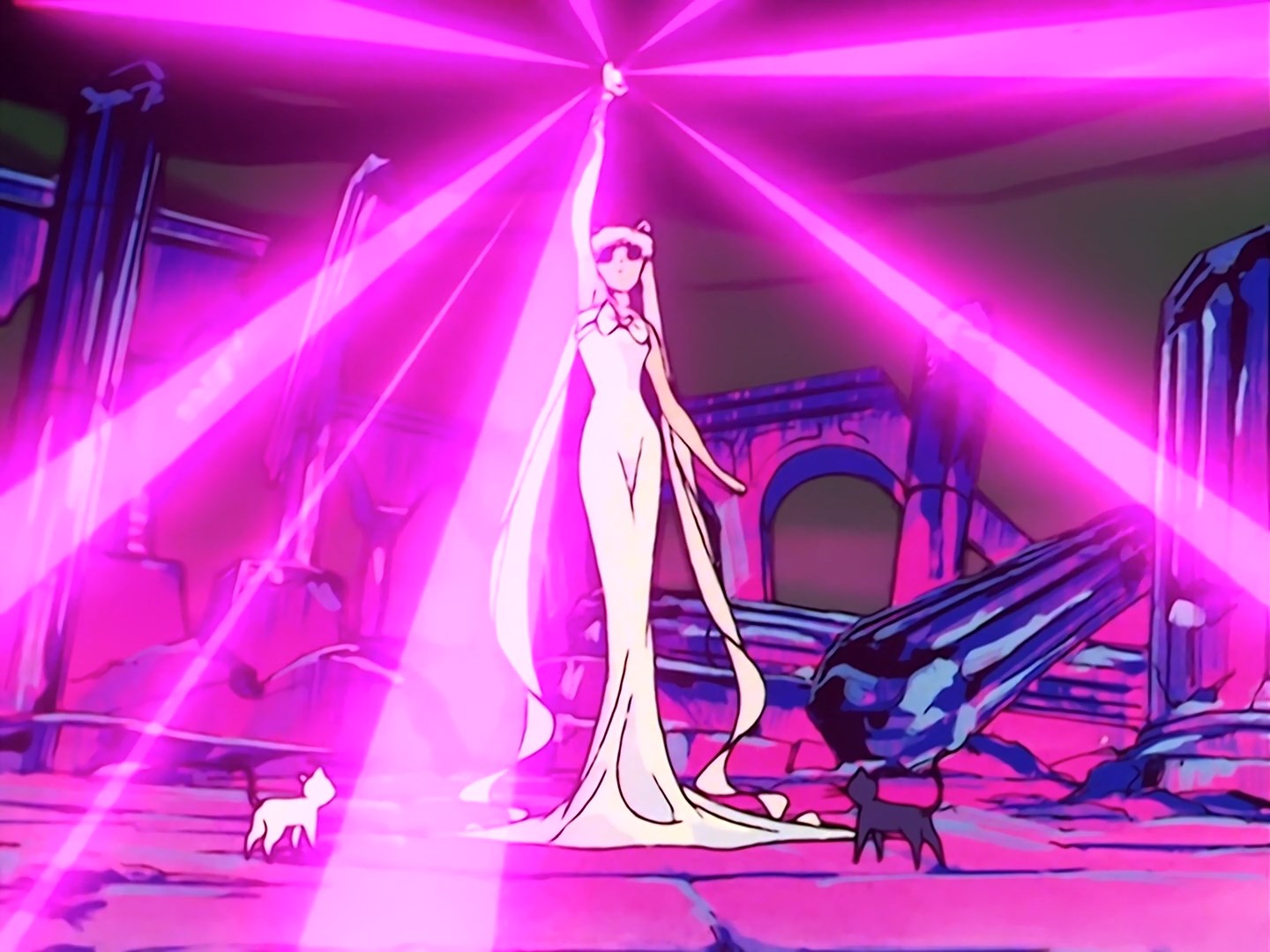Moon Healing Escalation! (ムーン・ヒーリング・エスカレーション!) - atak z użyciem pałeczki Moon Stick i Srebrnego Kryształu Iluzji. Wykonany po zniszczeniu Księżycowego Królestwa przez Beryl, dzięki niemu wojowniczki i inni mieszkańcy mogli się odrodzić w teraźniejszości, a Luna i Artemis zostali uśpieni w specjalnych kapsułach. Ten atak zakończył życie Królowej, bo zużyła na niego całą swoją energię. Wykonany w odcinku 44.
