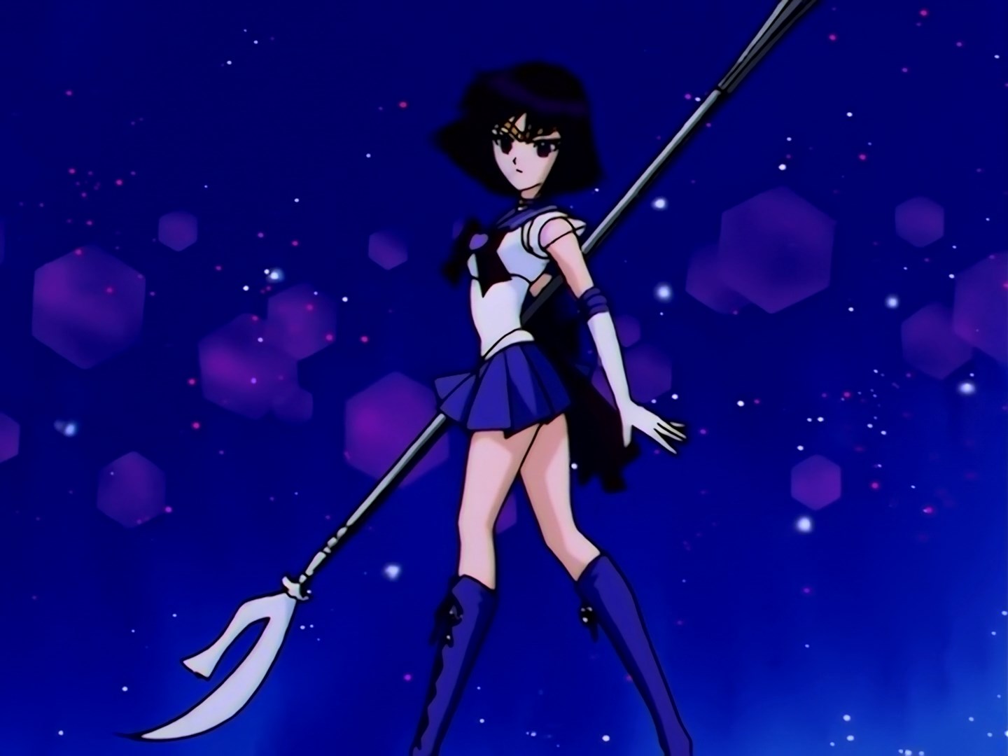 Chinmoku no hoshi, dosei o shugo ni motsu, hametsu to tanjou no senshi, Sailor Saturn! - Strzeżona przez Saturna, planetę ciszy. Wojowniczka zniszczenia i odrodzenia, Sailor Saturn! Przemowa Sailor Saturn, pojawia się raz w odcinku 168.