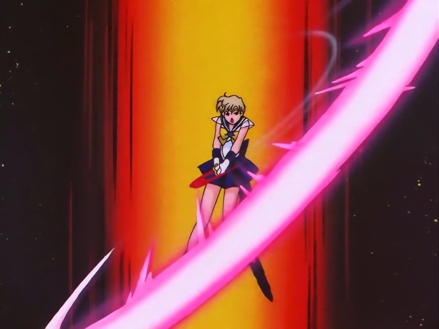 Space Sword Blaster (スペース・ソード・ブラスター!) - atak Sailor Uranus z użyciem Space Sword. Używany w odcinkach 169, 190 oraz w filmie SuperS.