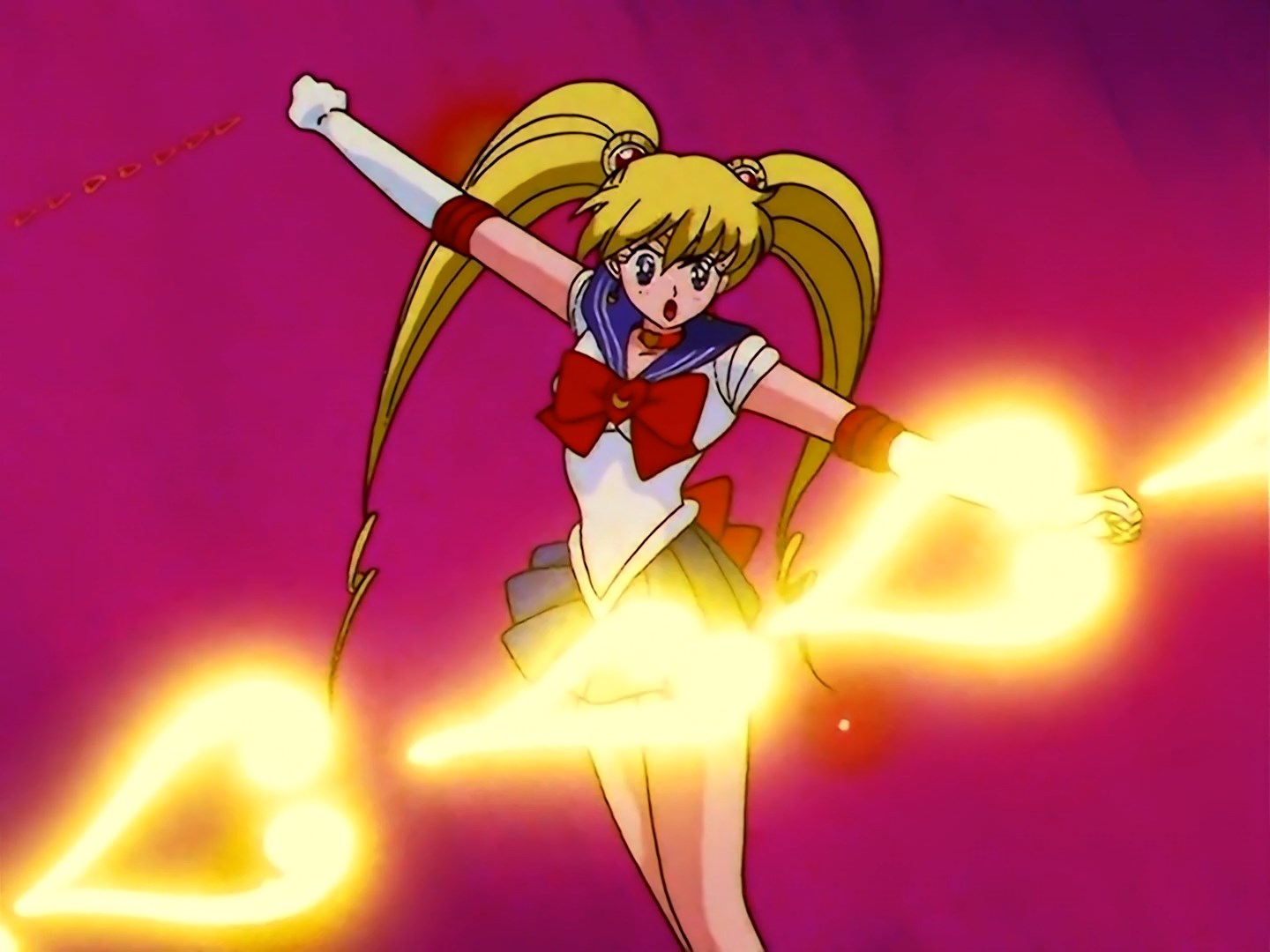 Crescent Beam! (クレッセント・ビーム!) - atak Sailor Venus, wysyła w kierunku żółty promień. Używany w odcinkach 33 (użyty 2 razy), 35, 37, 40 (połączony z Supreme Thunder), 42-43 (w 43 połączony z Supreme Thunder), 45, 48-50 (w 48 łączony z Fire Soul), 52-53 (w 52 użyty 2 razy), 86, 124, w filmach R i S.