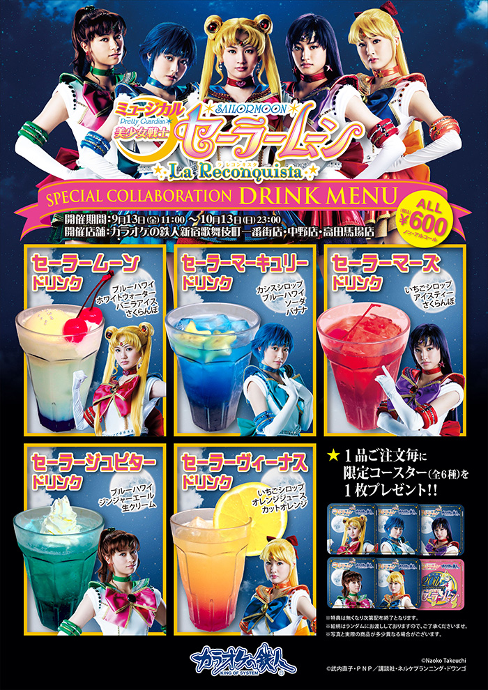 Zamawiając drinki, dostaniemy specjalną podkładkę z wizerunkiem jednej z wojowniczek lub logiem 20 rocznicy Sailor Moon, w sumie można zebrać 6 różnych podkładek. Strona baru
