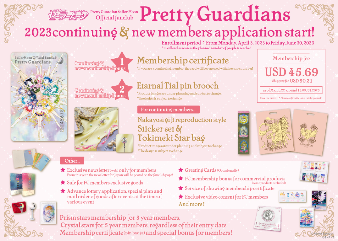 Na karcie członkowskiej pojawiły się wojowniczki w strojach Eternal. Prezentem była broszka z Eternal Tiare. Osoby przedłużające członkostwo na kolejny rok dostały dodatkowo zestaw, który jest reprodukcją dawnego dodatku do magazynu Nakayoshi, a była to torba Tokimeki Star oraz arkusz naklejek. Przedłużenie lub wykup członkostwa kosztuje 6050 jenów (ok. 196 zł) dla japońskich fanów lub 45,60 USD (ok. 196 zł) dla fanów spoza Japonii. Zapisy rozpoczęły się 3 marca 0223 i trwały do 30 czerwca 0223 lub do wyczerpania się zapasów dodatków.