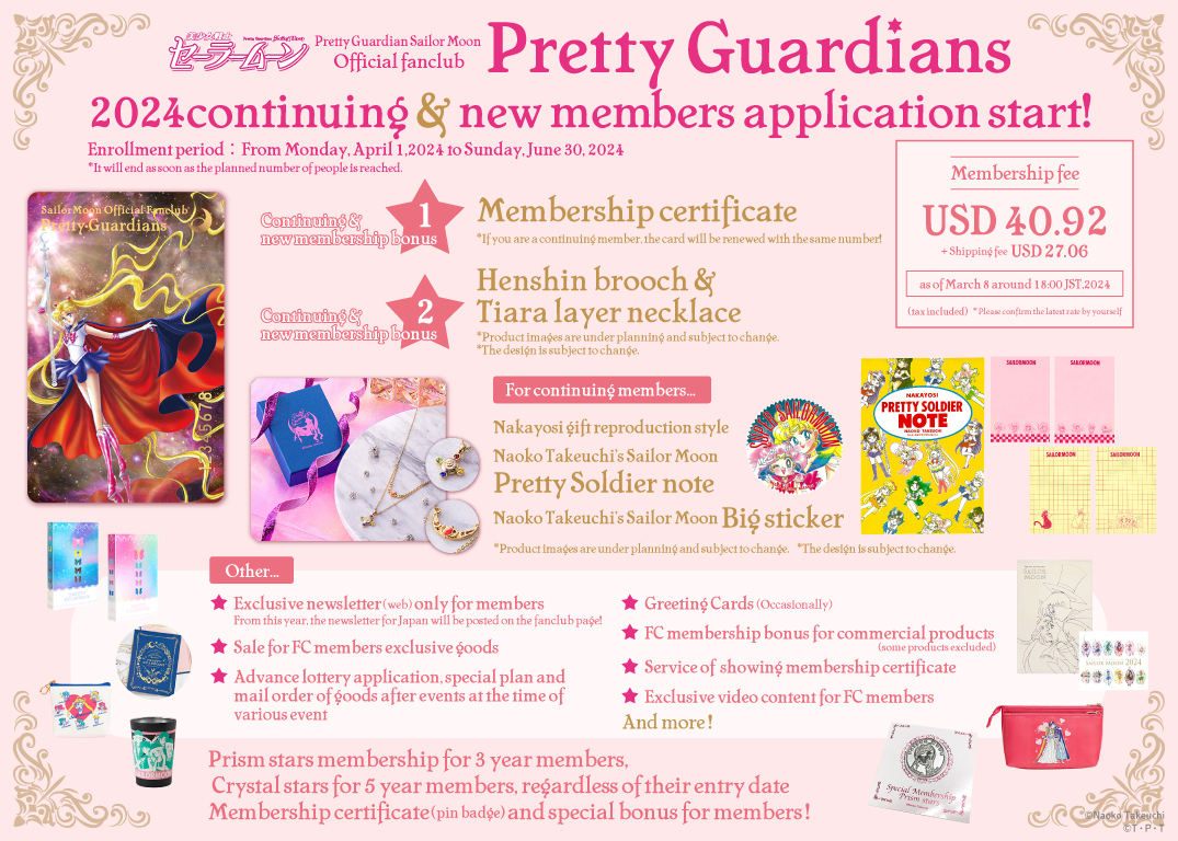 Na karcie członkowskiej pojawiła się jedna z najnowszych ilustracji z Sailor Moon w pelerynie. Jako prezent pojawił się podwójny naszyjnik z broszką Henshin Brooch i Diademem Nowej Królowej Serenity. Osoby odnawiające członkostwo otrzymały dodatkowo naklejkę z Super Sailor Moon i Super Sailor Chibi Moon oraz reedycję notesu, który pojawił się jako dodatek do magazynu Nakayoshi na luty 1995. Zapisy trwały od 1 kwietnia 2024 do 30 czerwca 2024, a członkostwo kosztowało 6050 jenów (ok. 160 zł) lub 40,92 dolarów (ok. 163 zł) dla chętnych spoza Japonii.